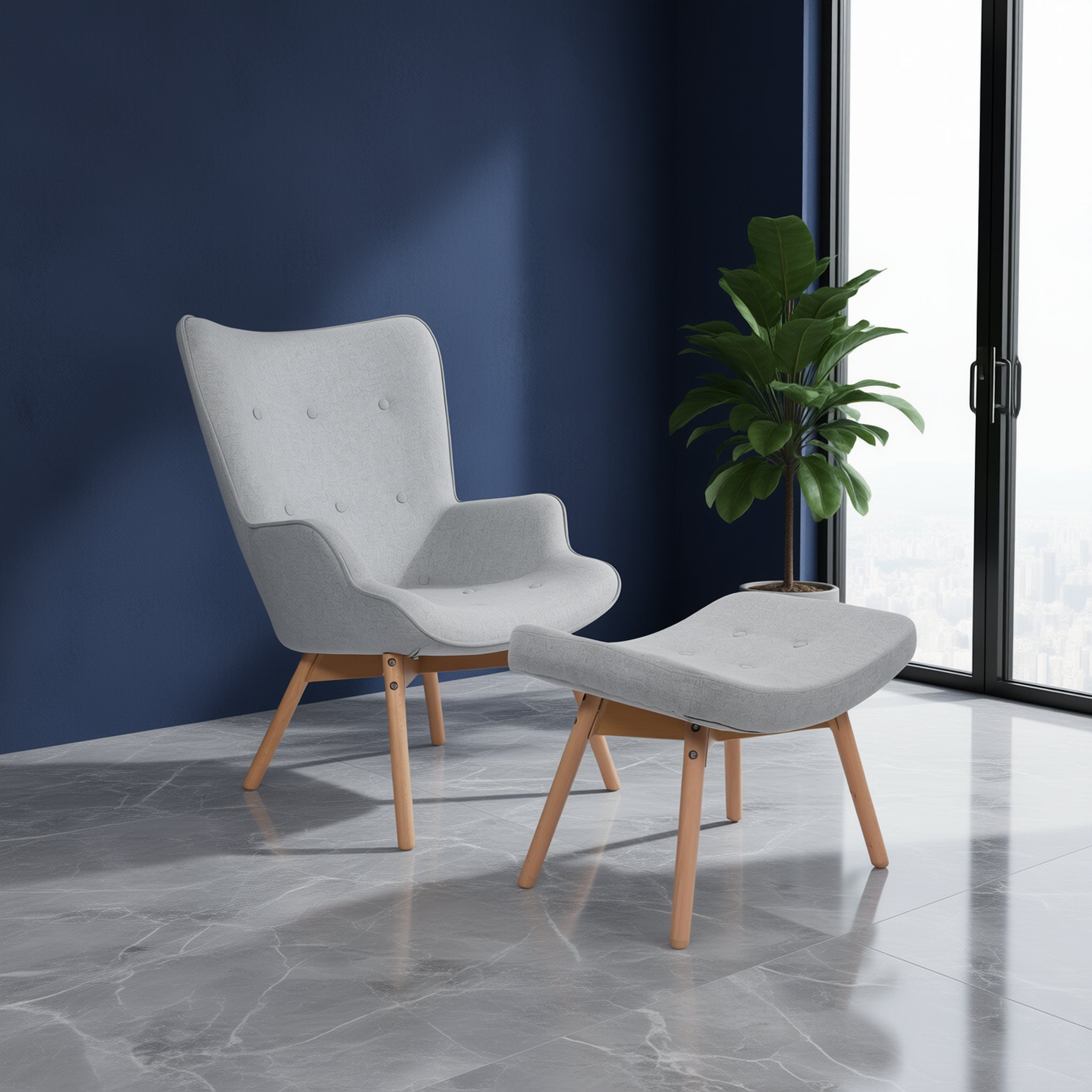 Alexa Armrest Lounge Chair with foot rest for Living Room/ Bedroom - Grey