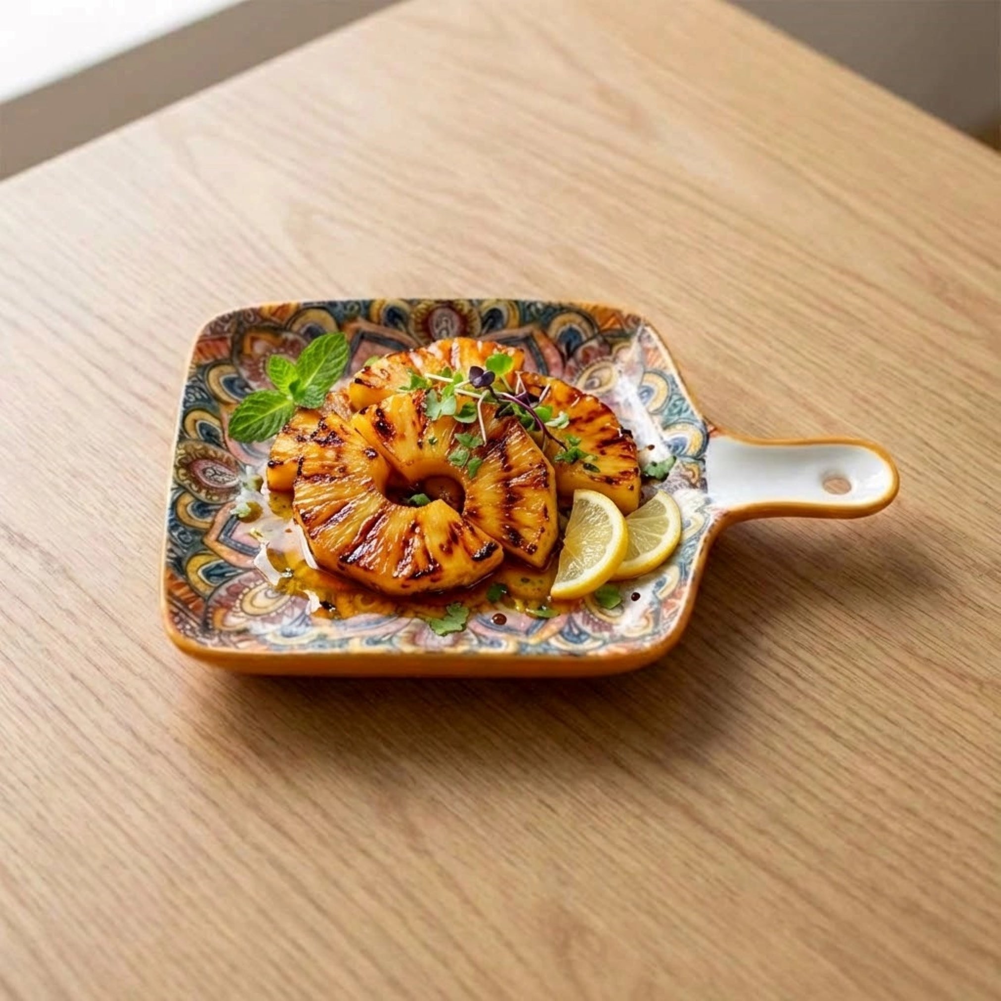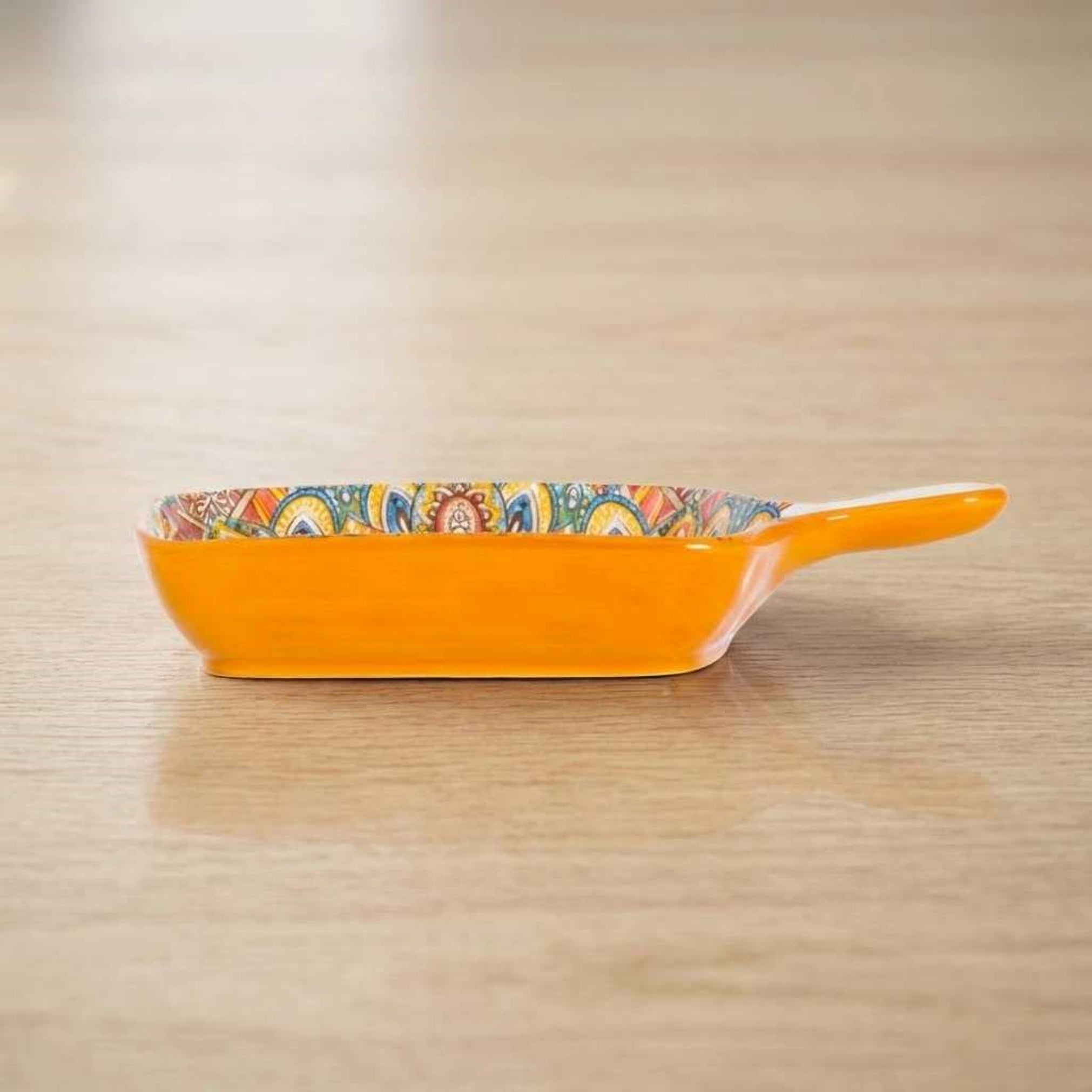 Fusion Mandala Ceramic Serving Platter with Handle Microwave & Dishwasher Safe