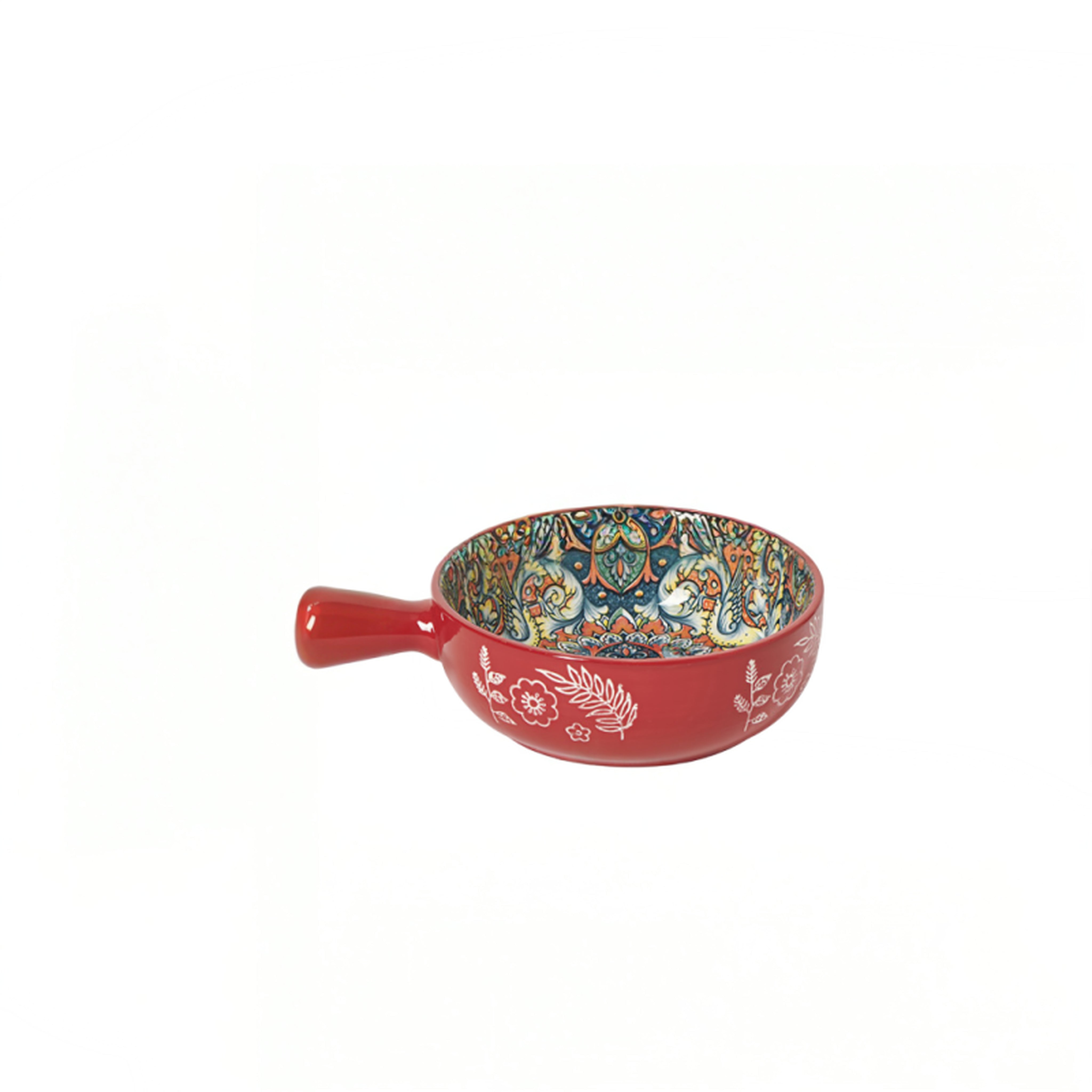 Ethnic Red Round Ceramic Serving Platter with Handle Microwave & Dishwasher Safe