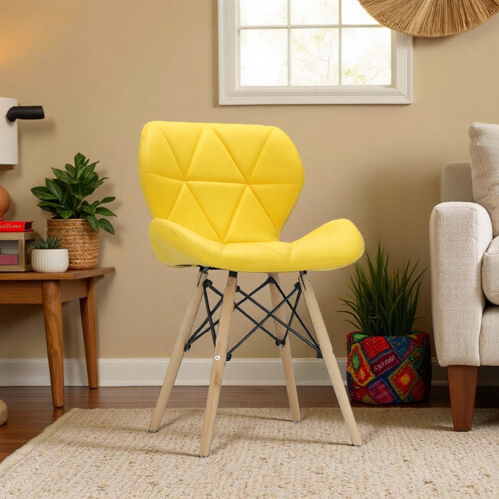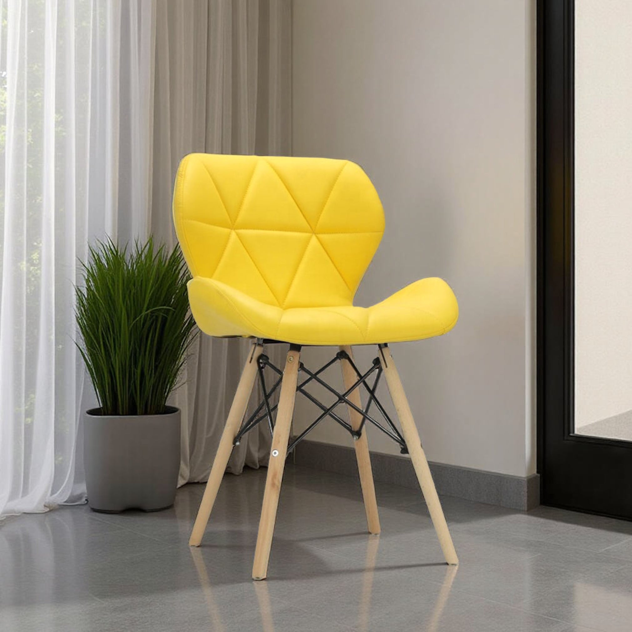 Diamond Leather Dining Chair - Yellow