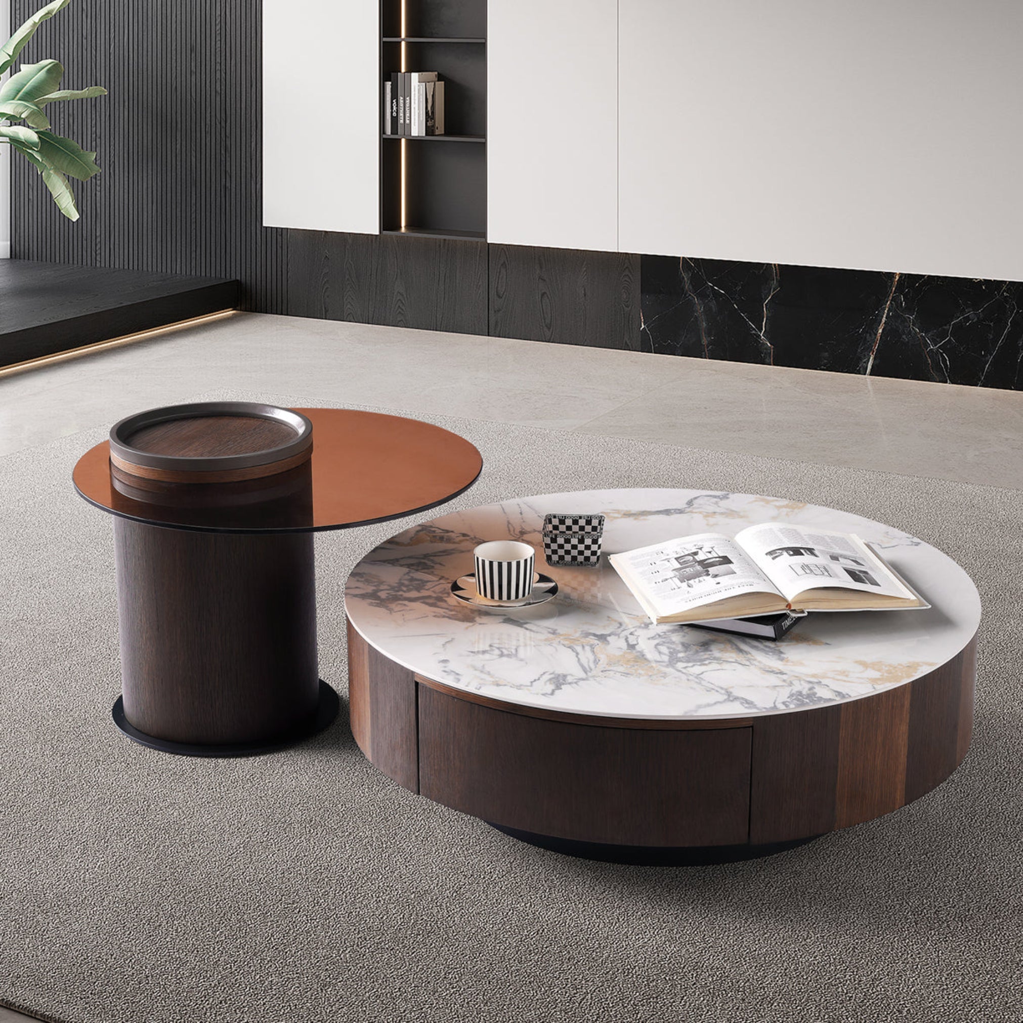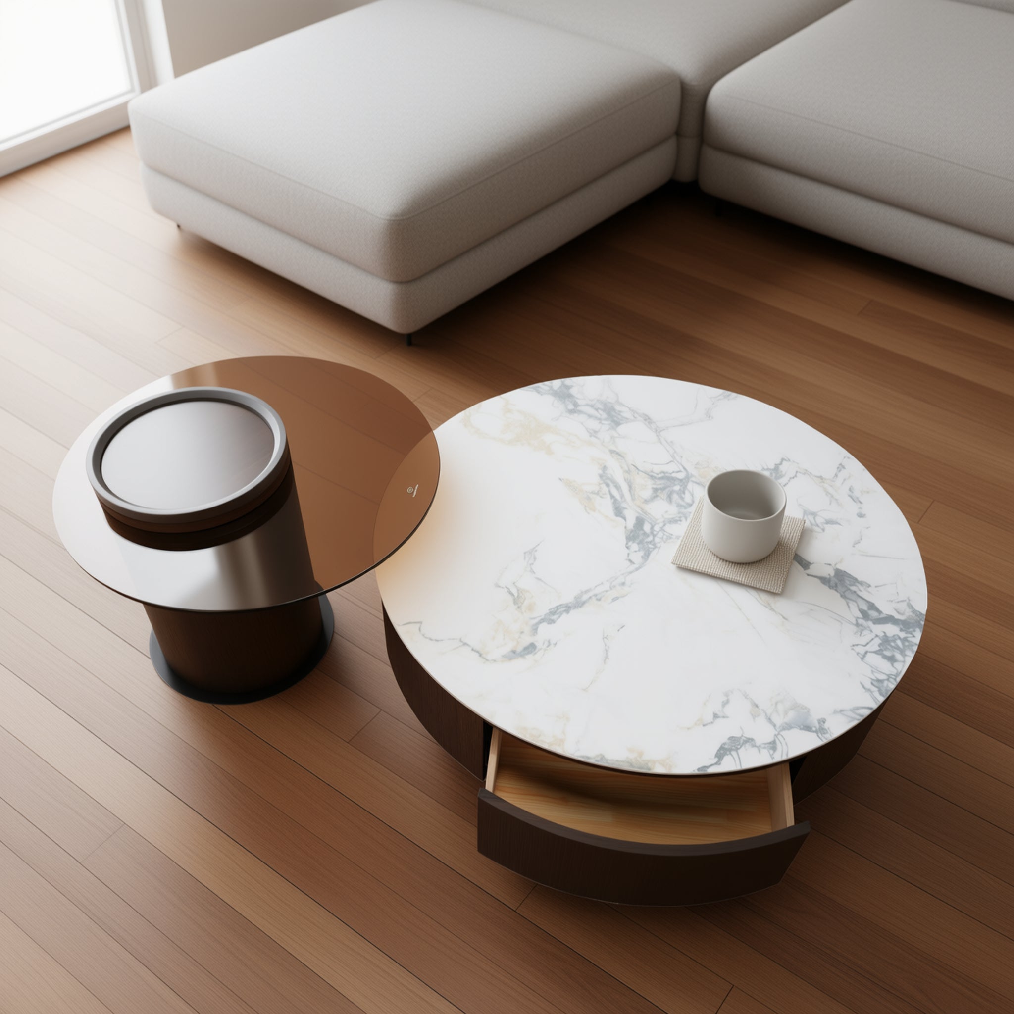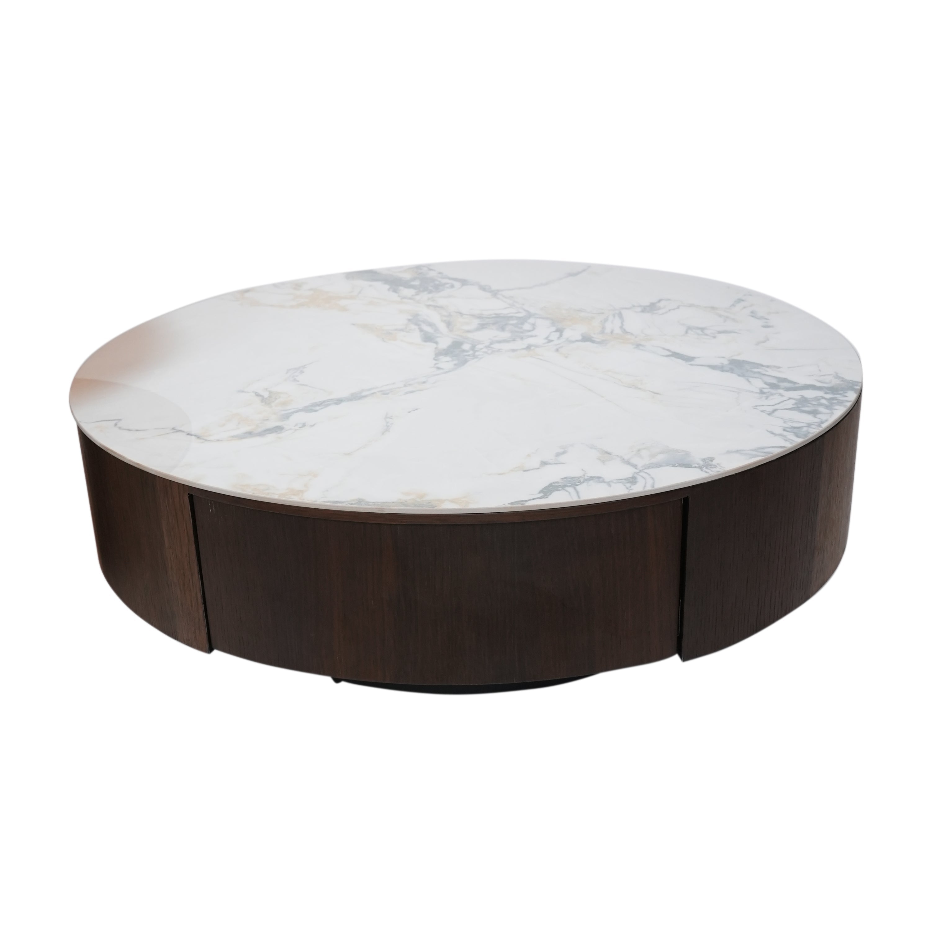 Alaska Center Table With Marble + Glass Top And Iron + Metal Base With Storage