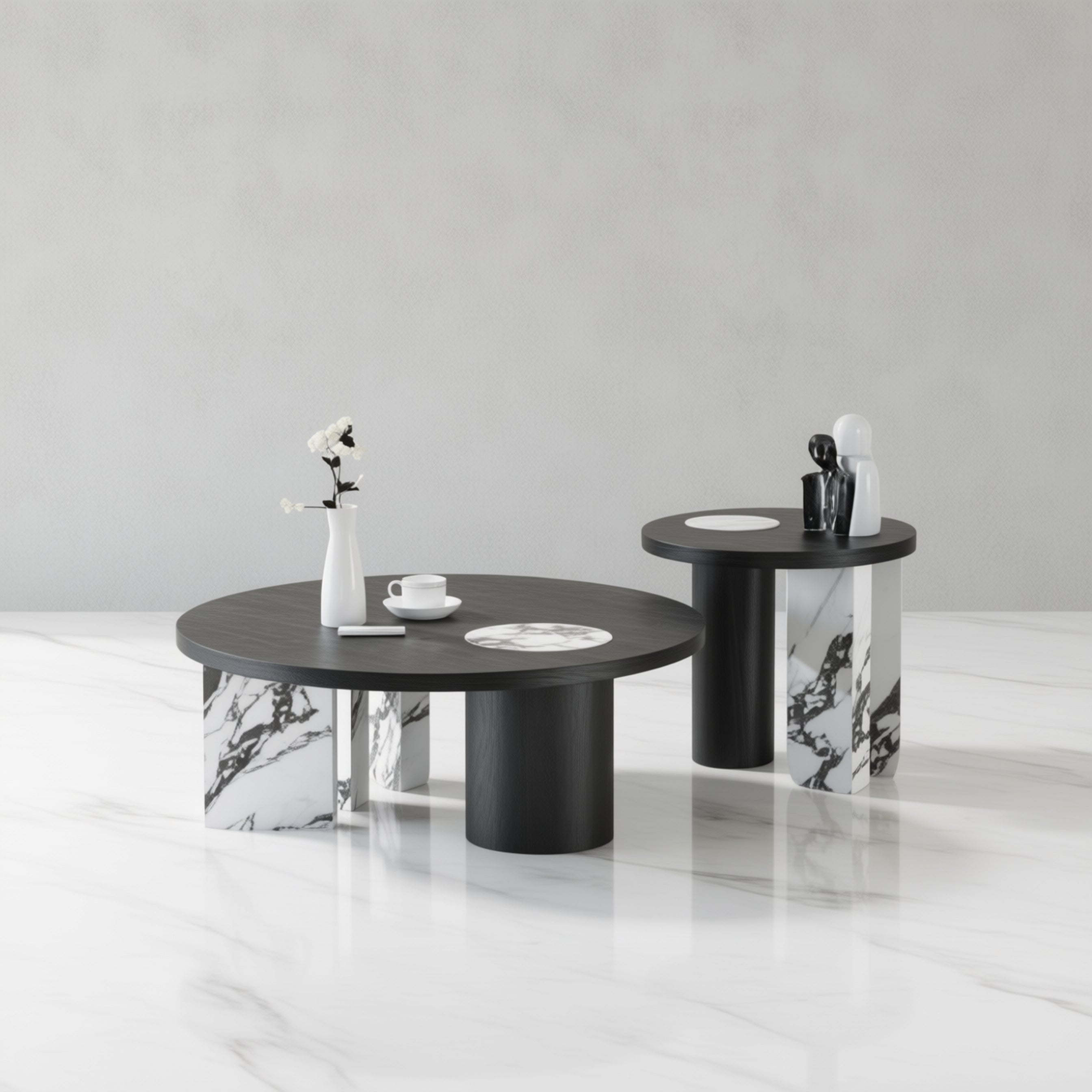 | Material - Marble & Wooden Top / Wooden & Marble Base |