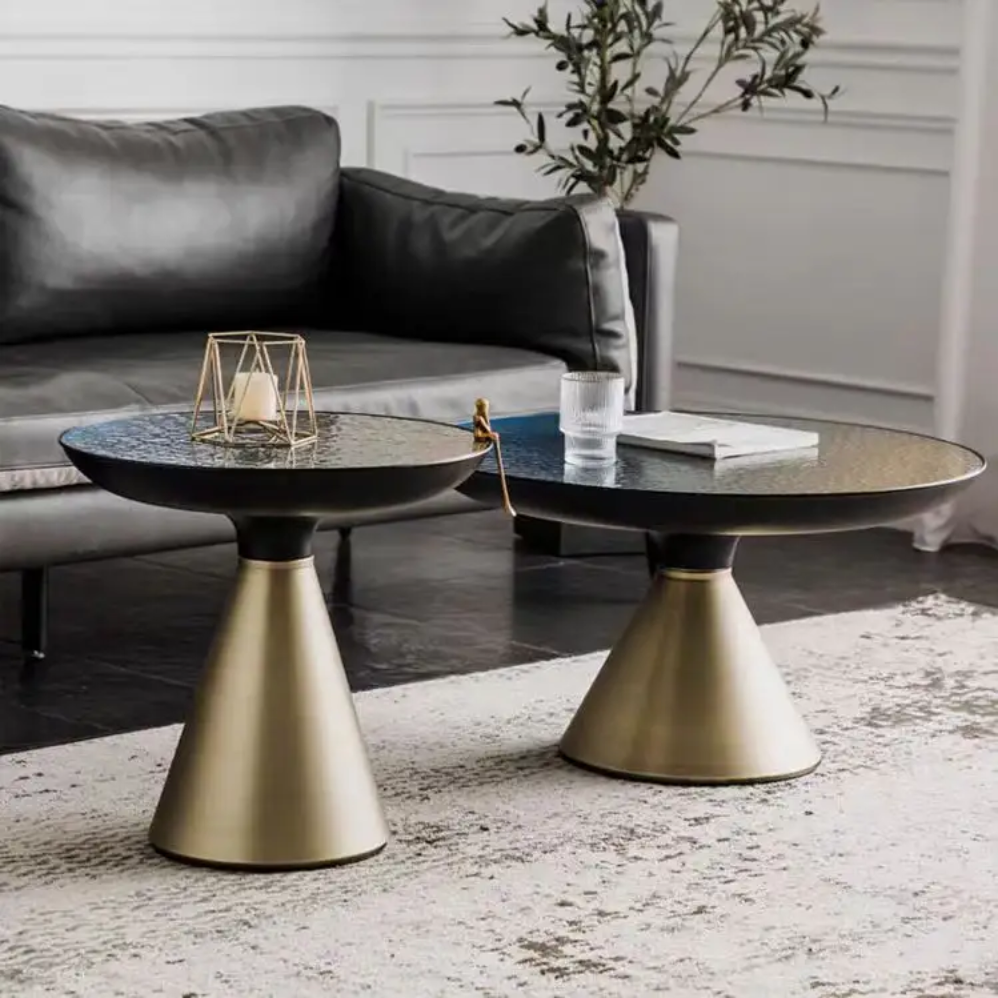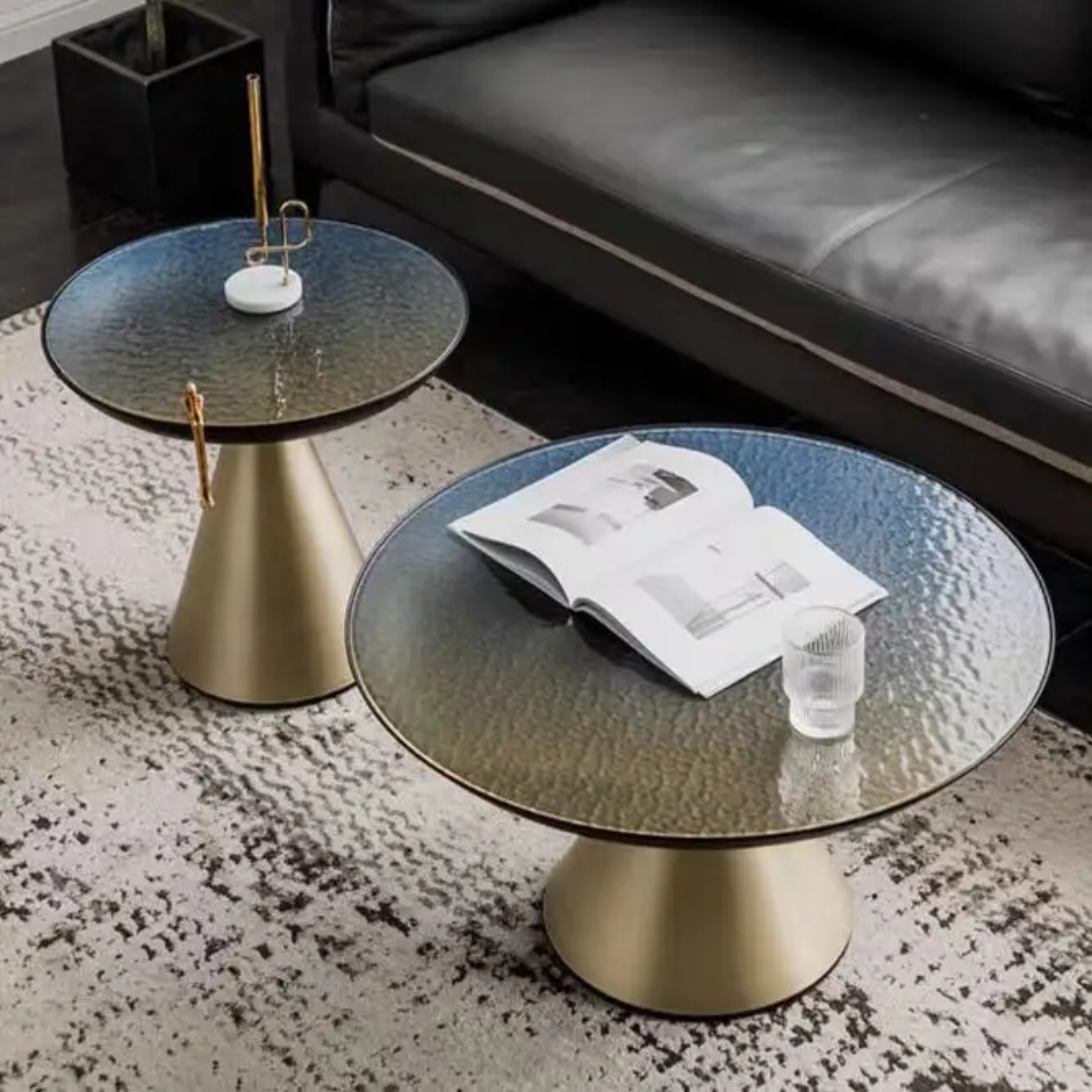 SYROS Round Coffee Table With Glass Top.
