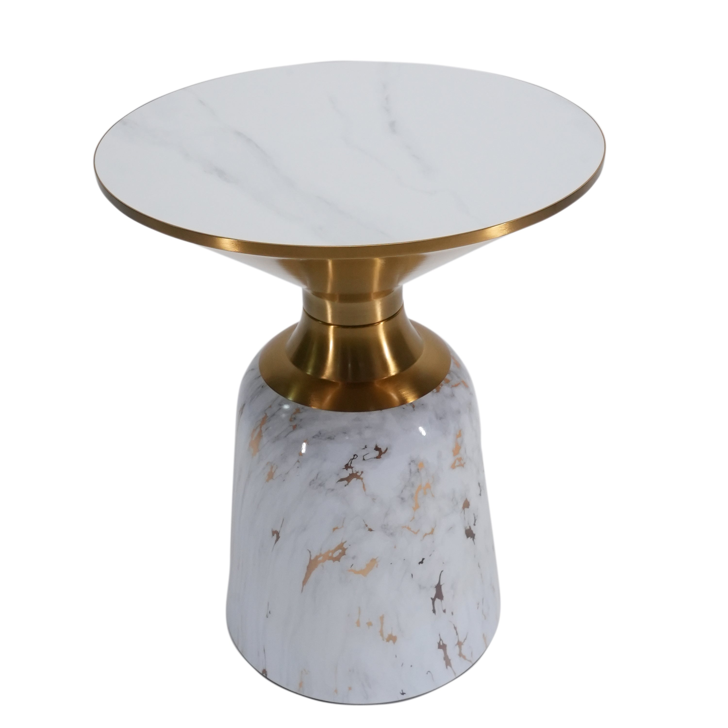 Castor Small Side With Marble Top And Metal Base - White With Gold