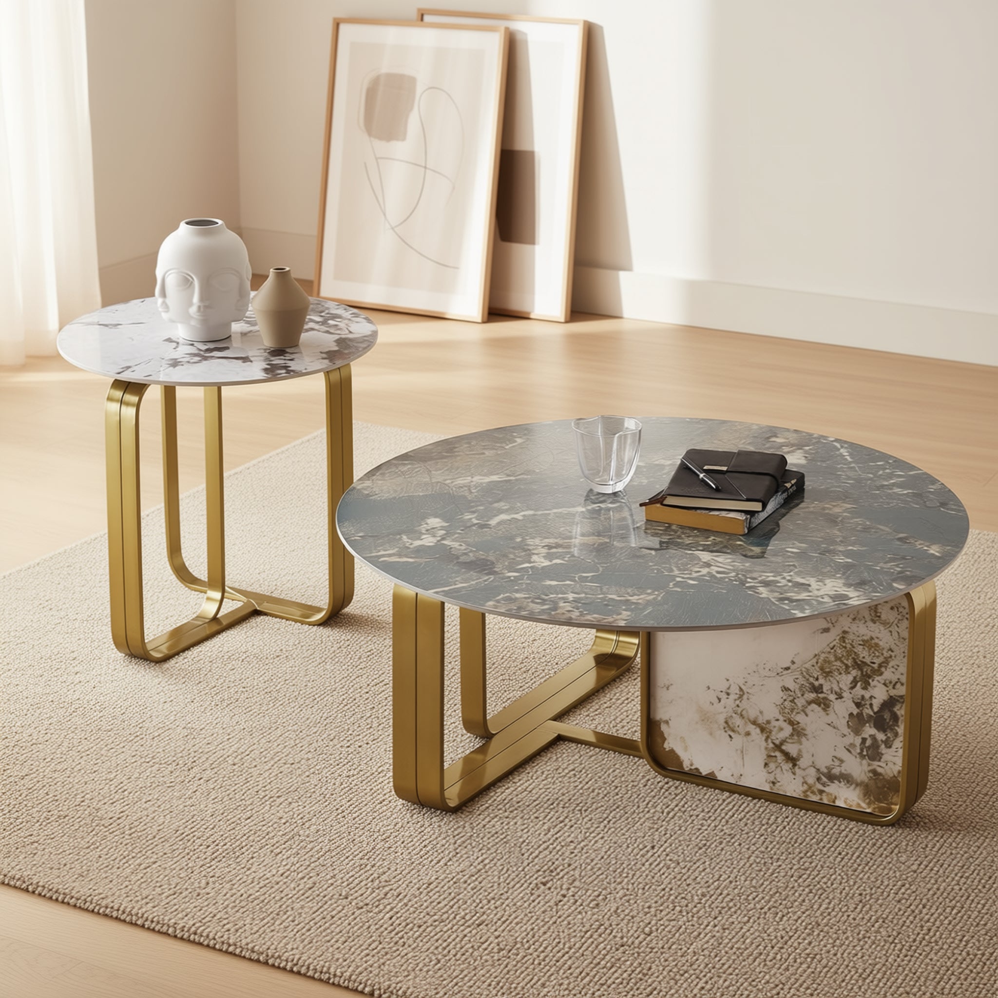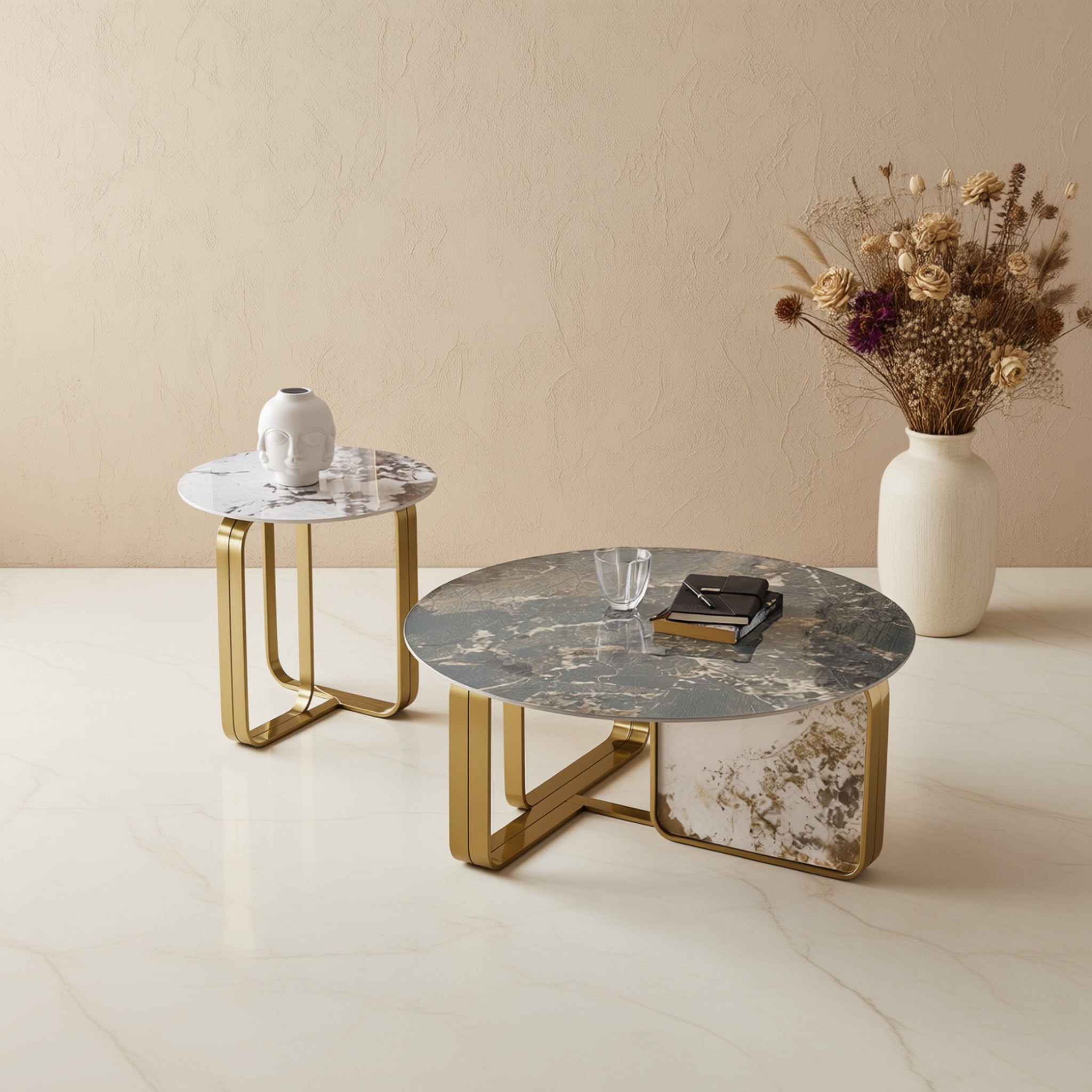 Dallas Center Table With Marble Top And Stainless Steel Base