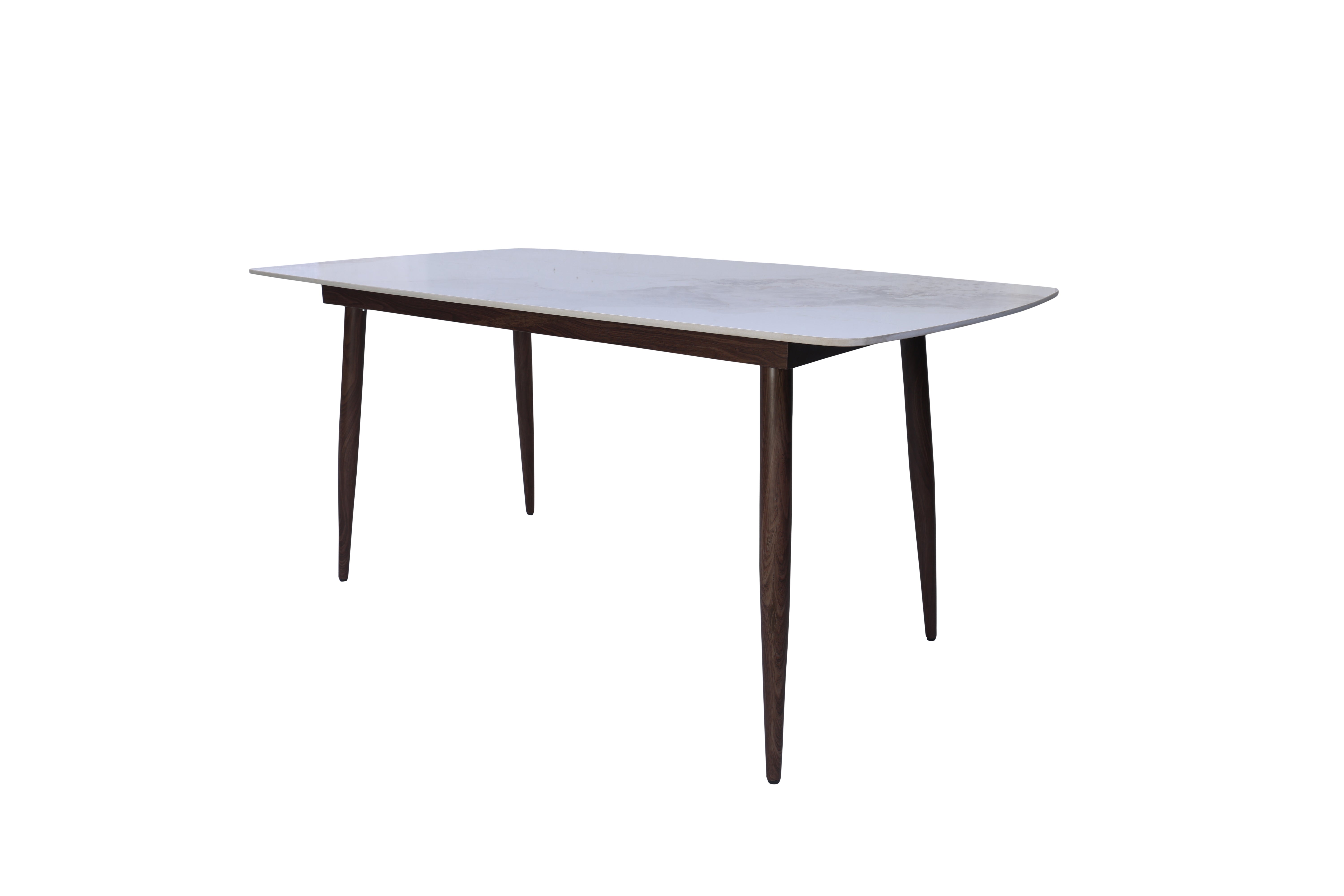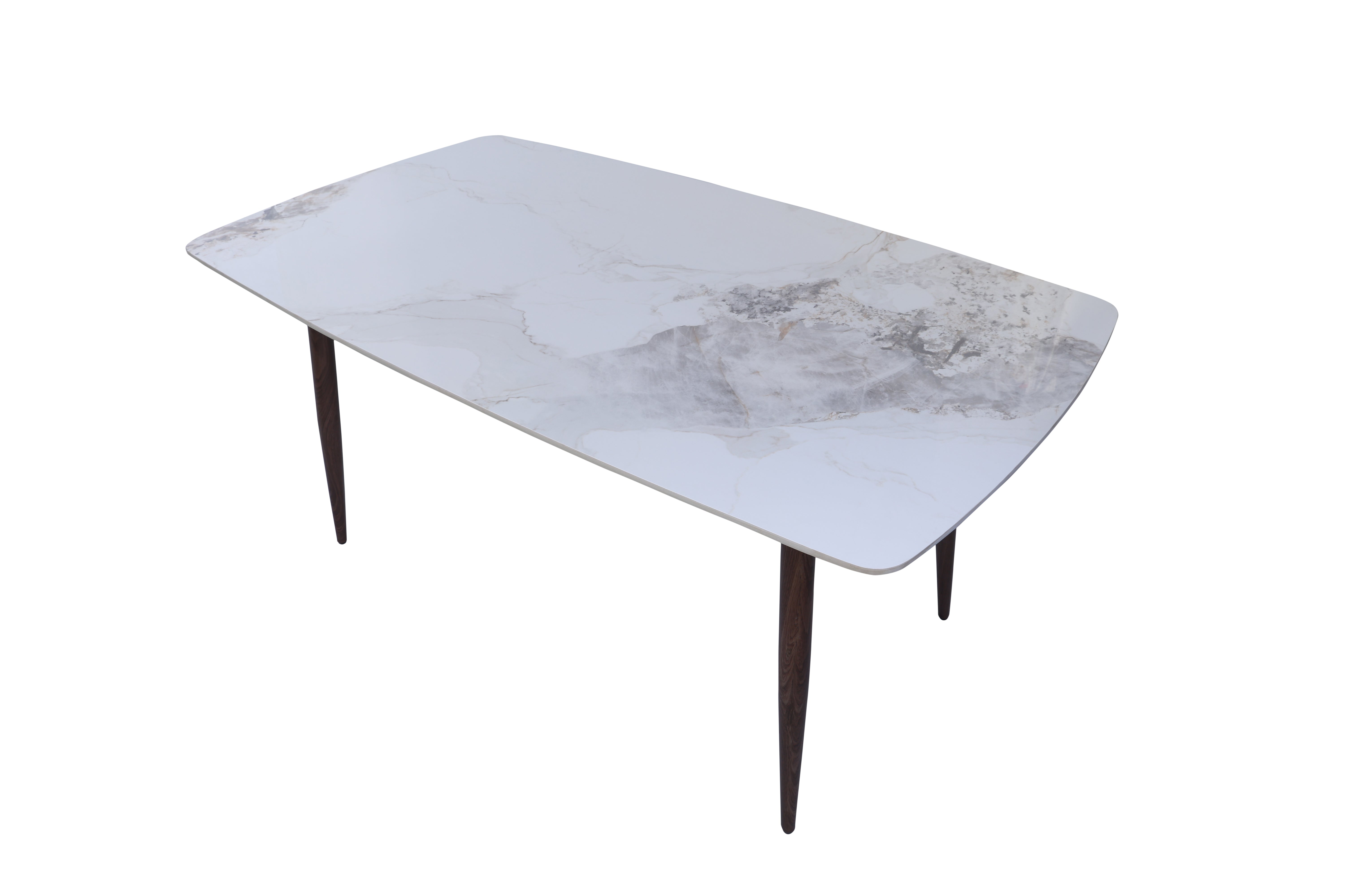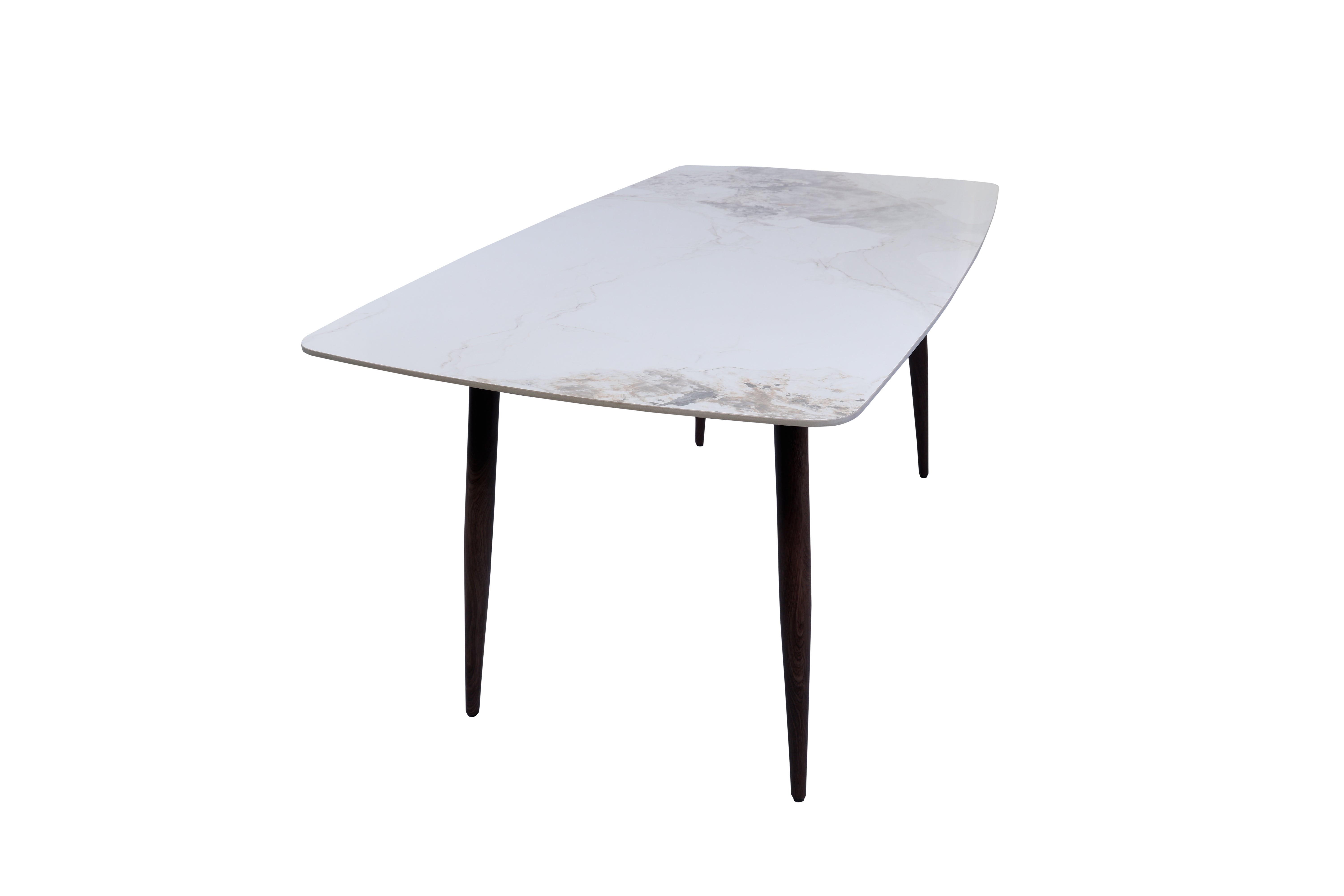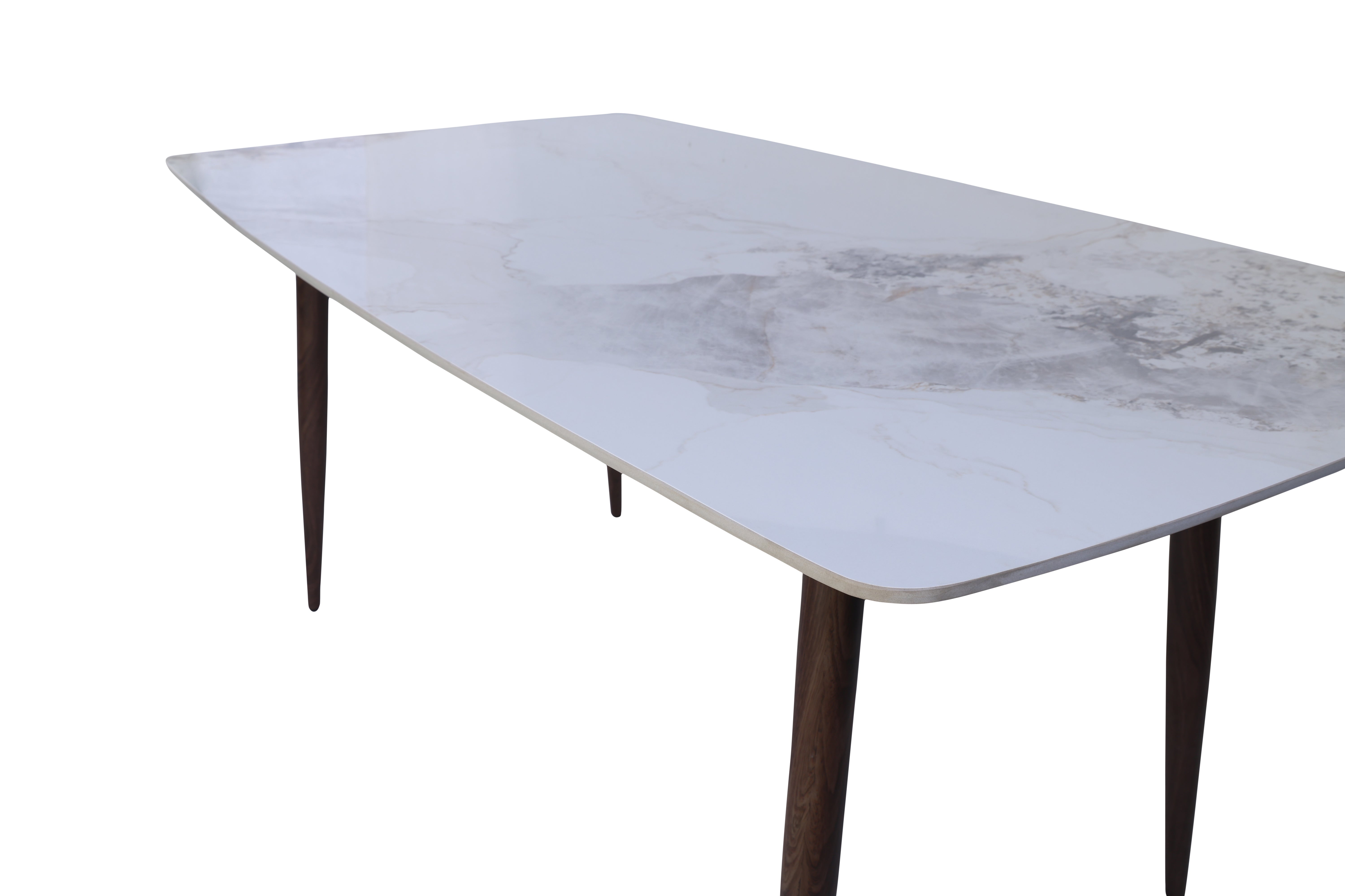 The table features slate marble top with 1.1 cm thickness, wooden texure finish brown metal legs that offer both strength and style.