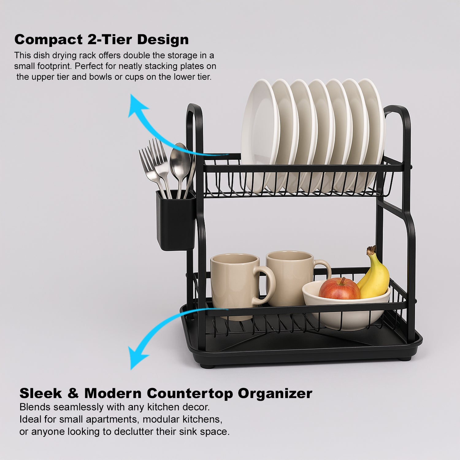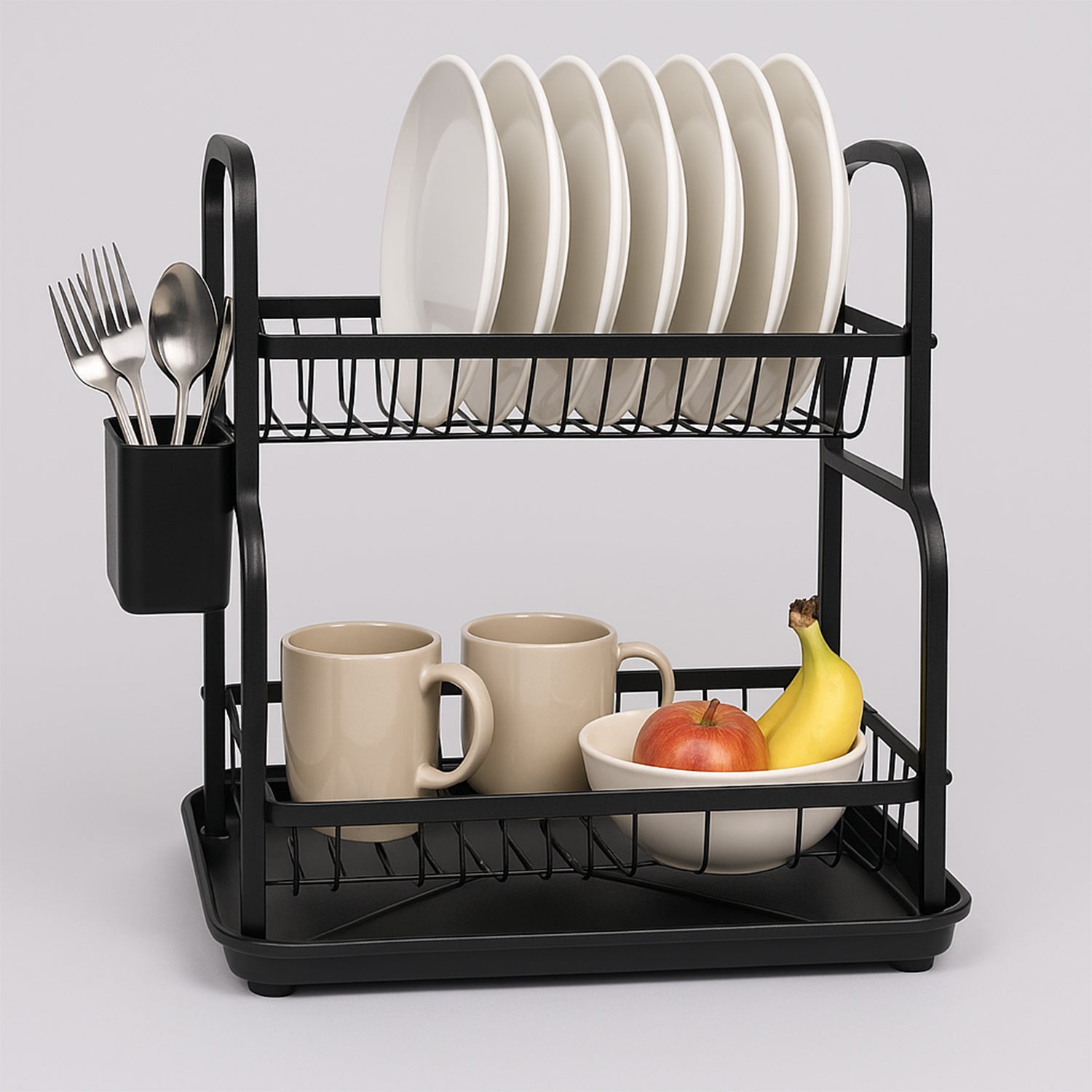 Organize your kitchen with ease using the Epicasa® 2-Tier Dish Drying Rack – a compact and stylish solution for drying and organizing plates, bowls, and cutlery. This countertop dish rack is designed to maximize space without compromising on capacity. With two dedicated tiers for dishes and bowls, plus a side-mounted cutlery holder, it ensures every item has its place.