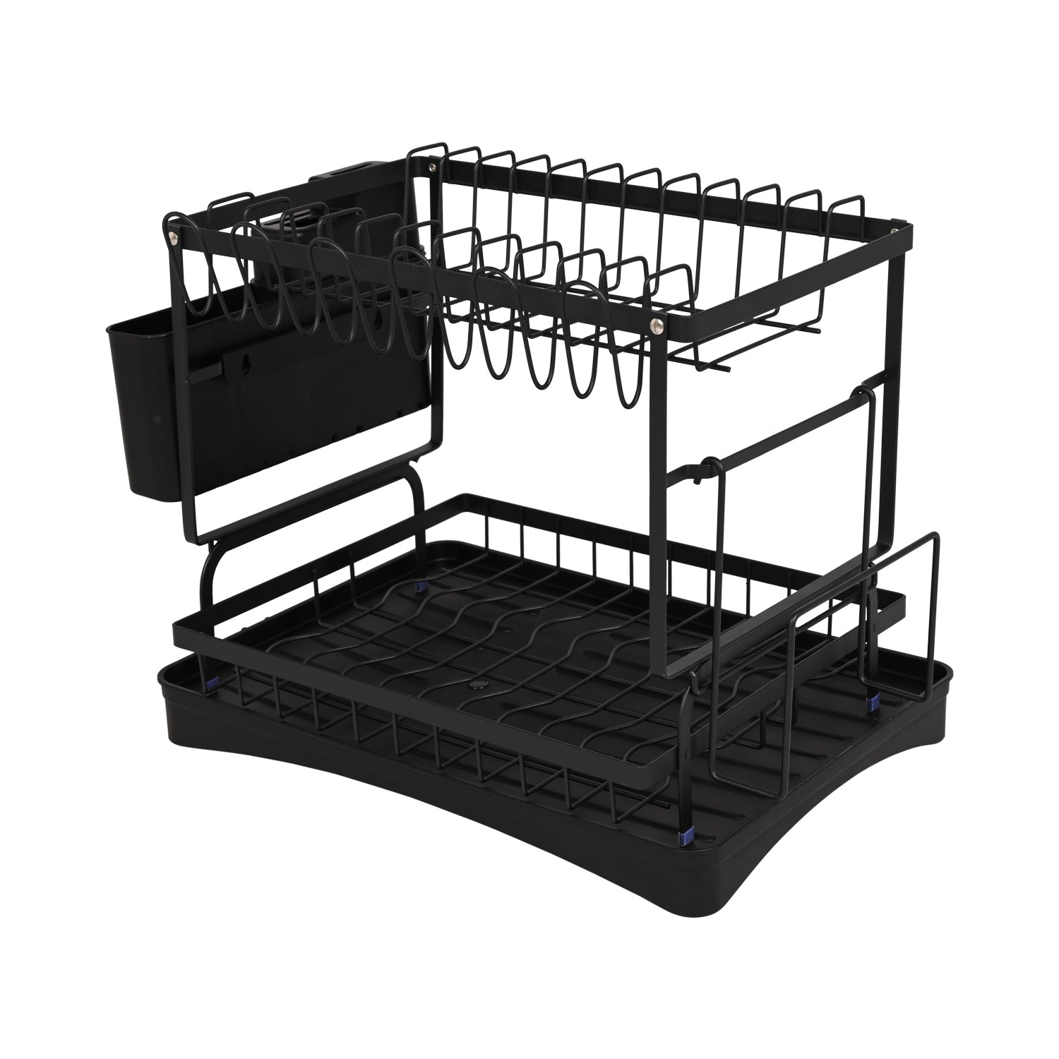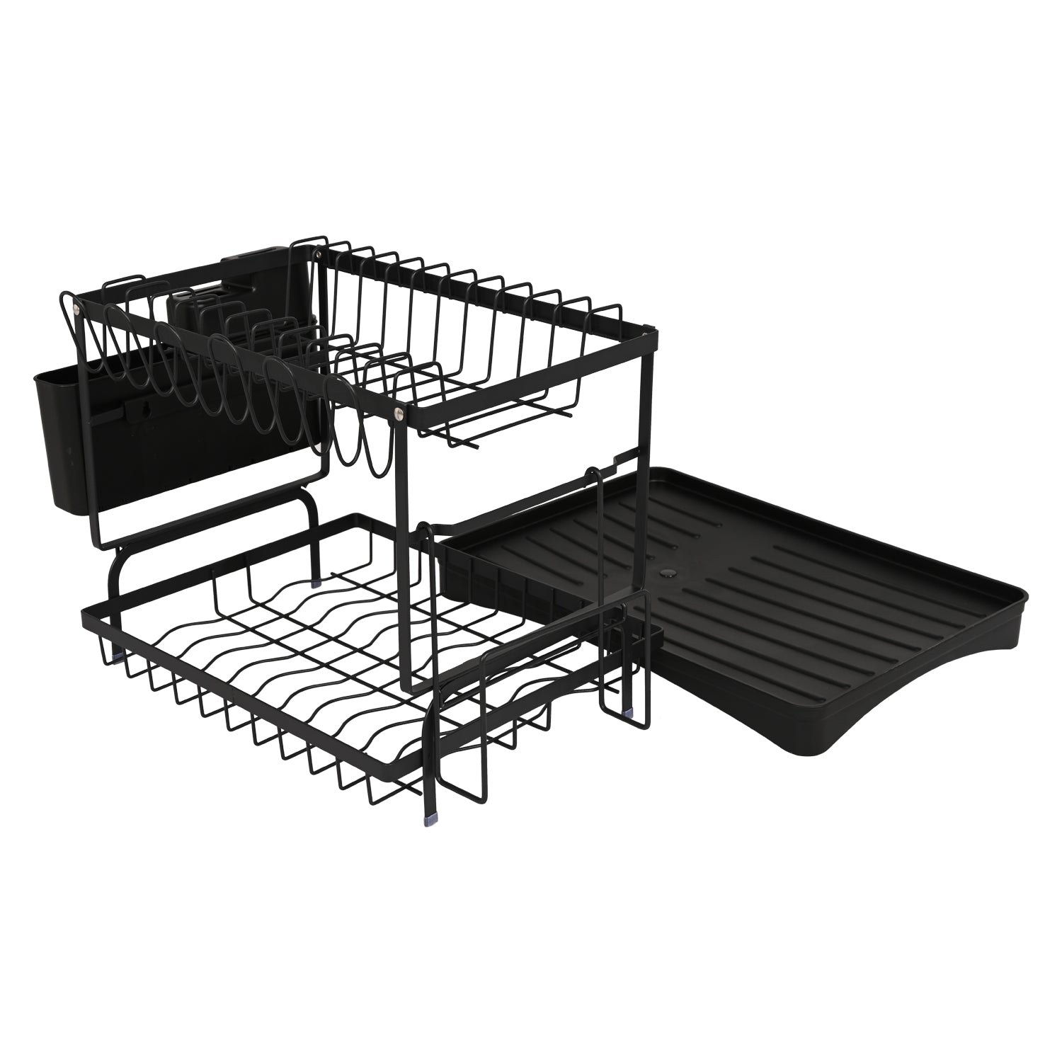 Dish Drying Rack With Cutlery Holder & Tray Metal 2 Tier – Black