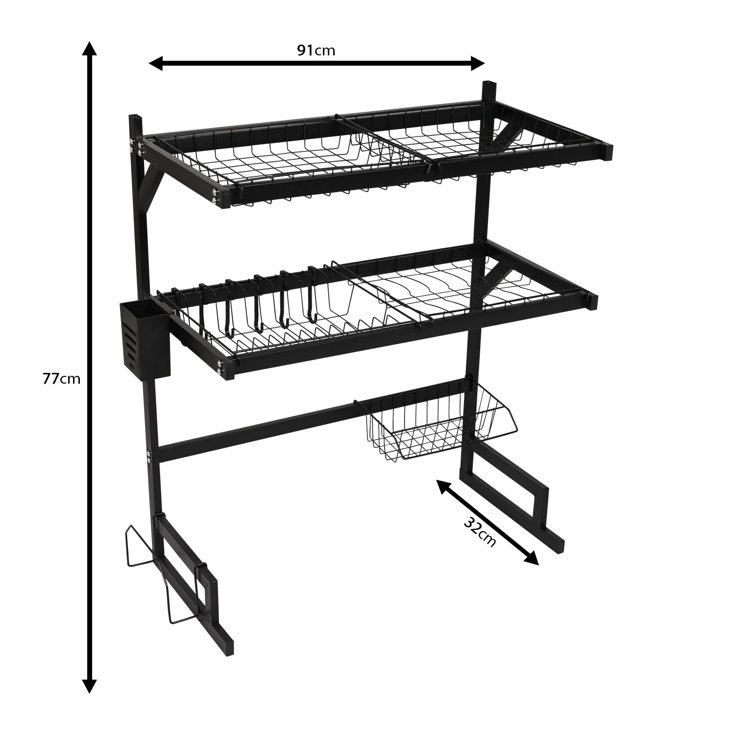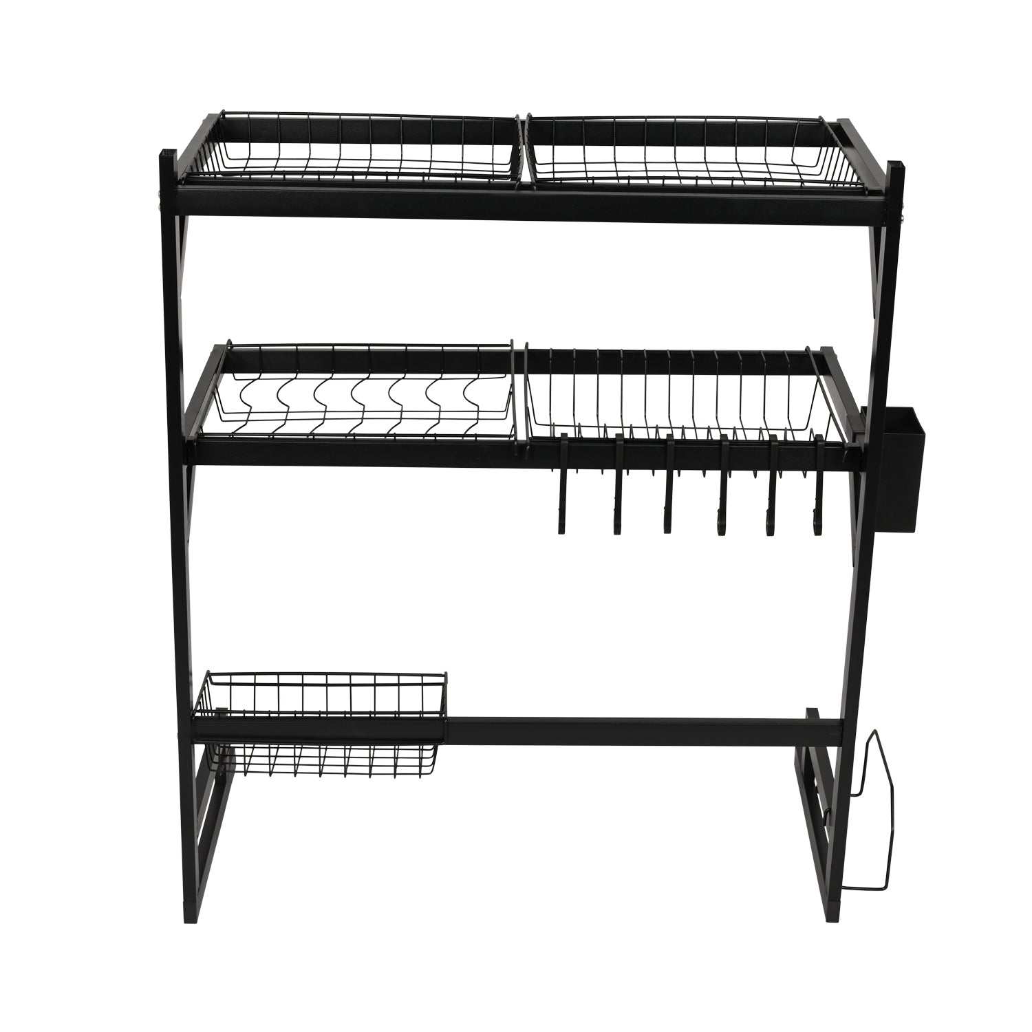 Over-Sink Dish Drying Rack Stainless Steel 2 Tier - Black