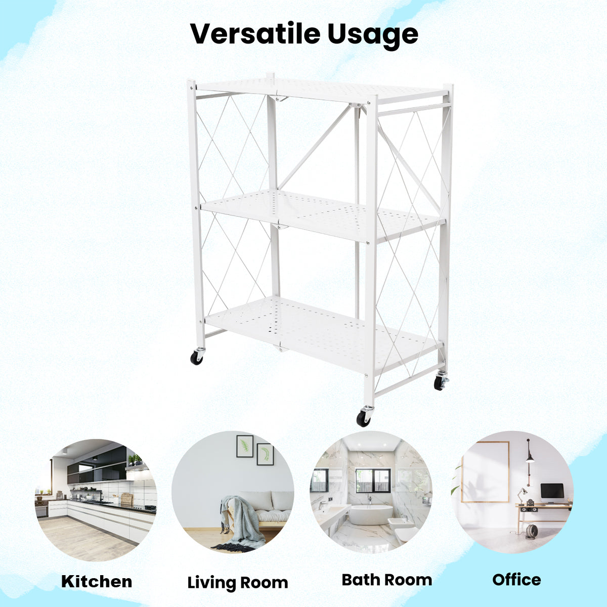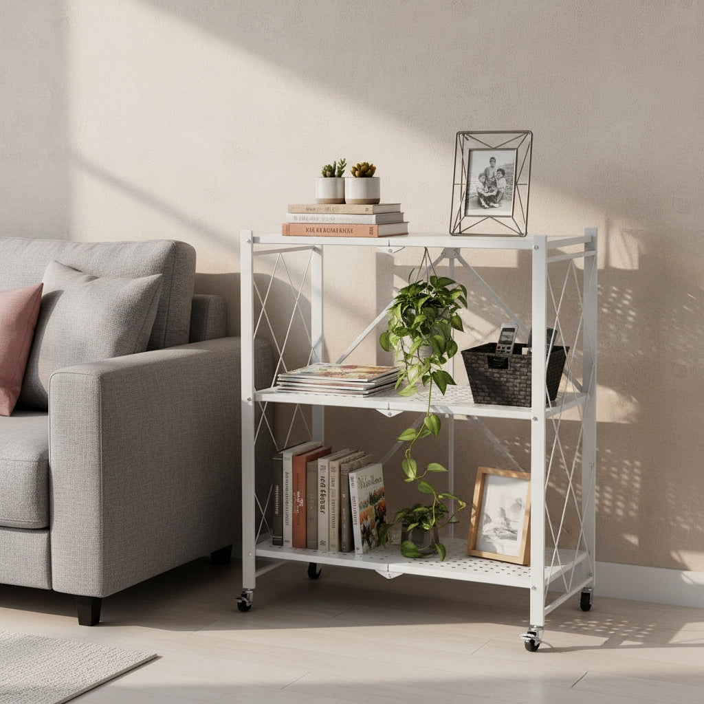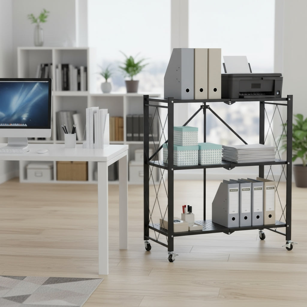 Upgrade your space with the Epicasa® Foldable 3-Tier Storage Rack, a perfect fusion of functionality, space-saving design, and modern aesthetics. Crafted from high-strength metal with thick shelves, this durable rack is ideal for storing household essentials, books, kitchenware, or office files.