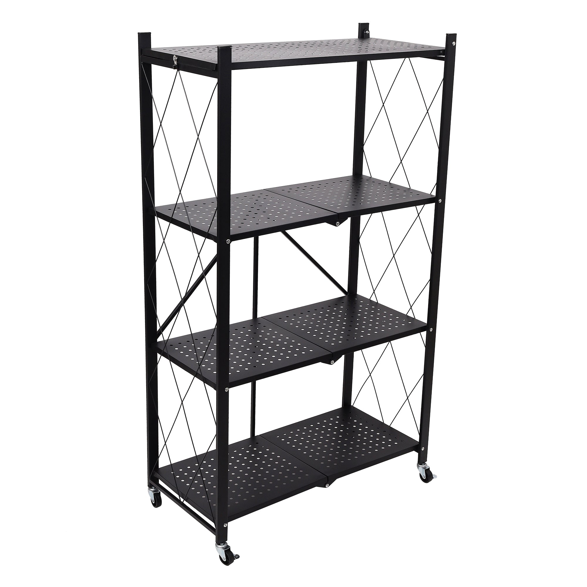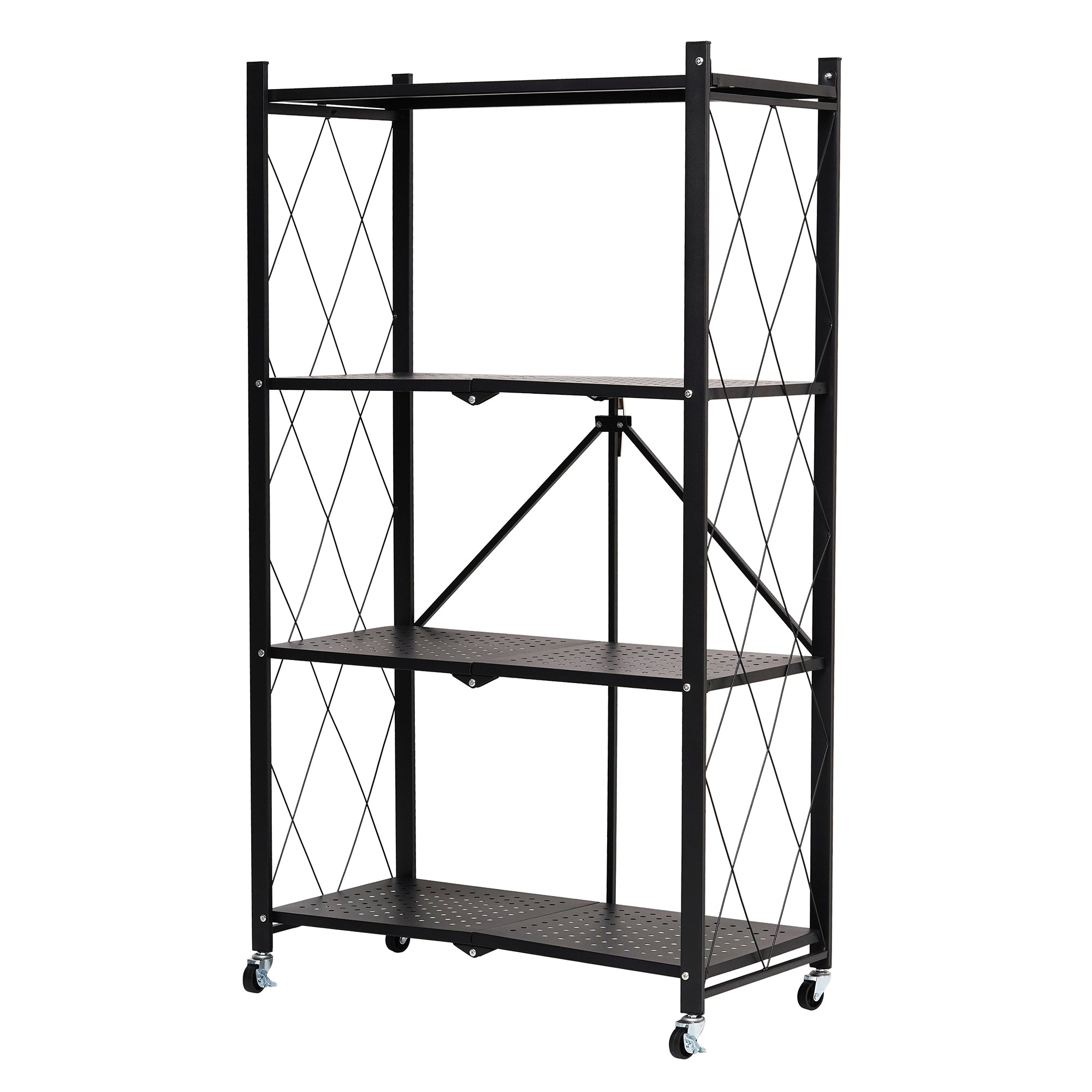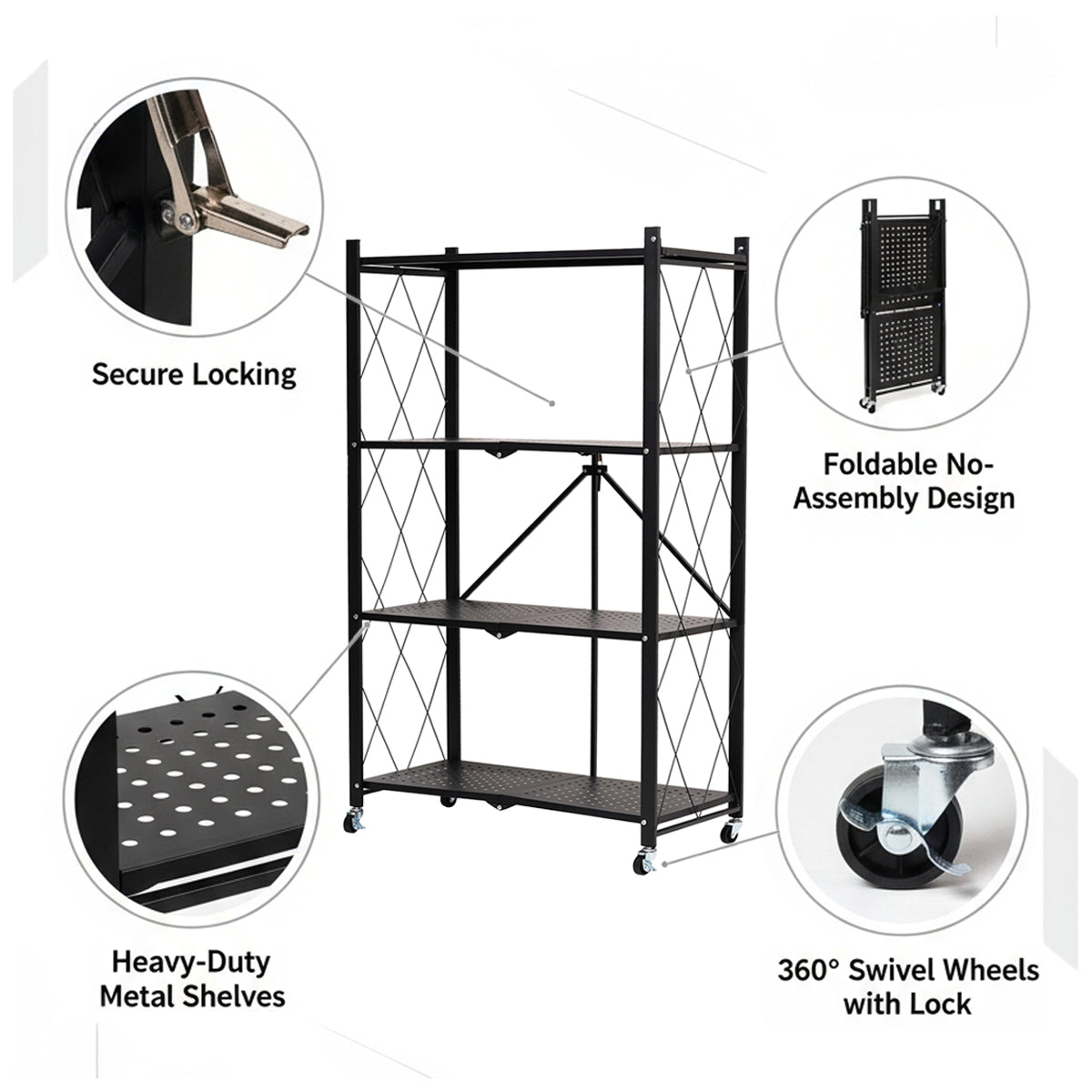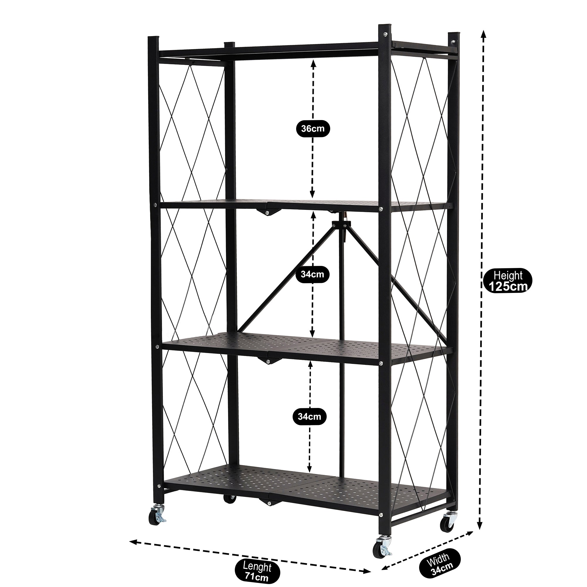4-Tier Multipurpose Folding Metal Trolley - Black