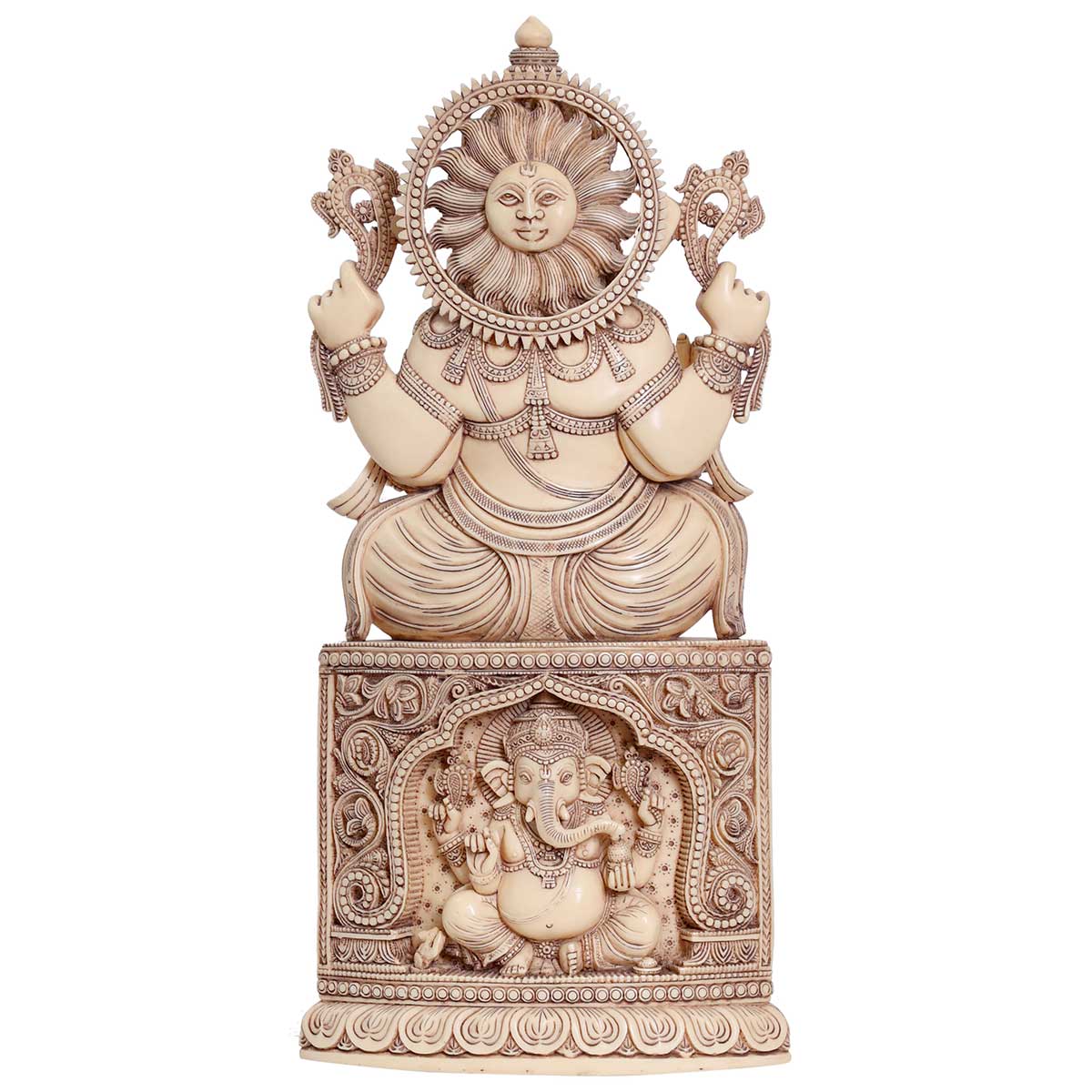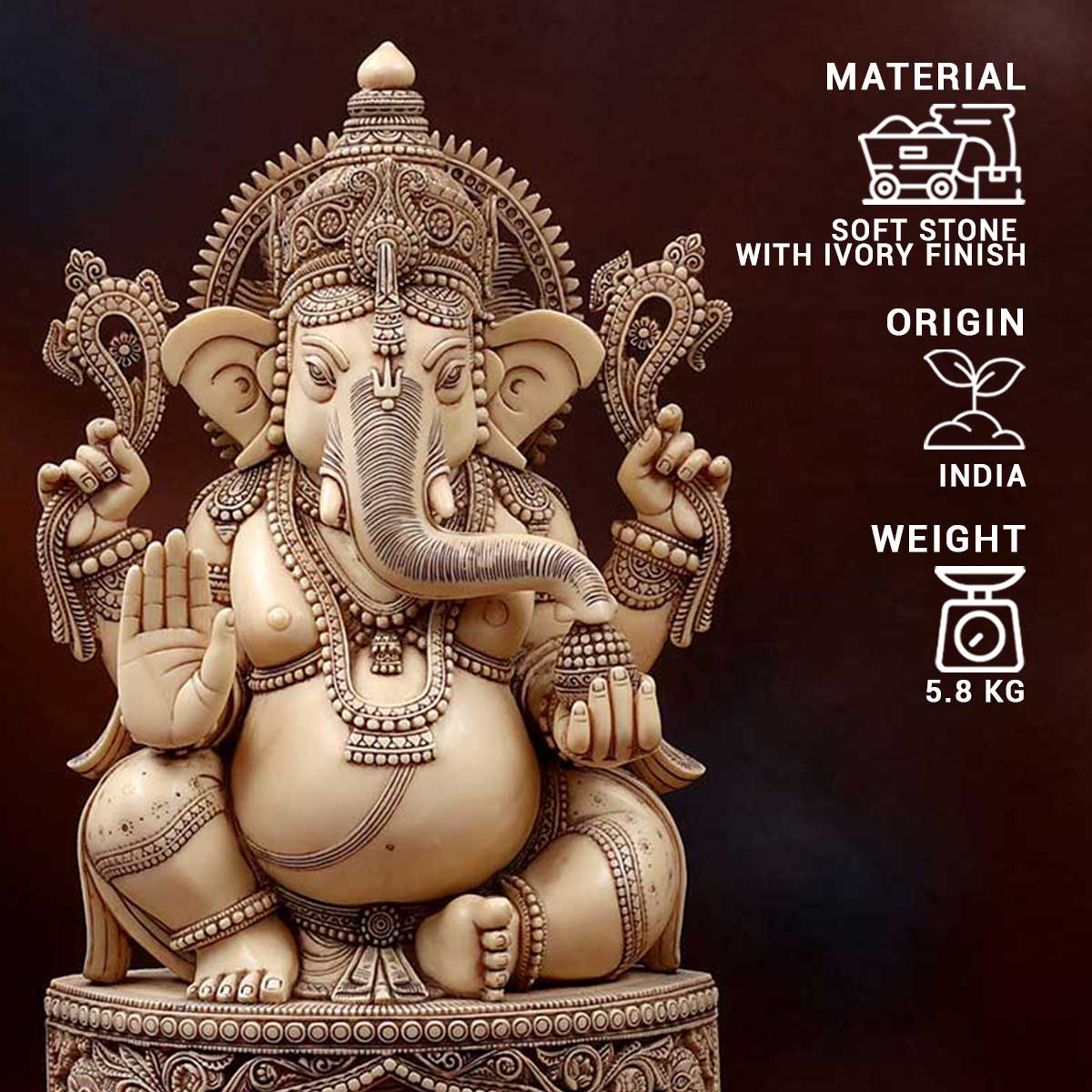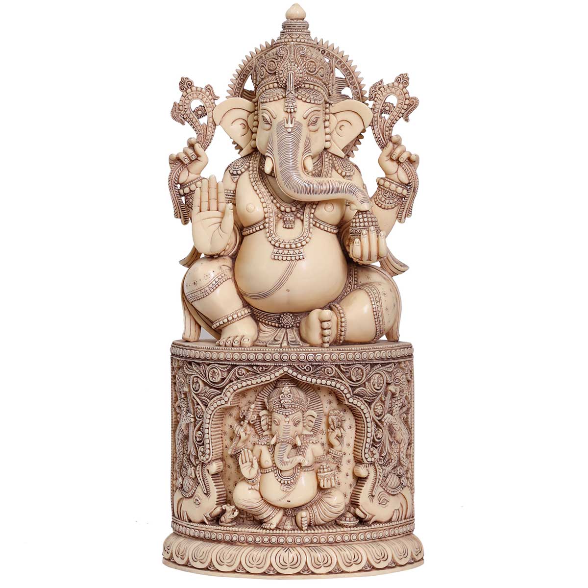 Lord Ganesha sitting on ganesha pedestal Idol Ivory made of Soft stone - 9 x 5 x 18 Inch, 5.8 Kg