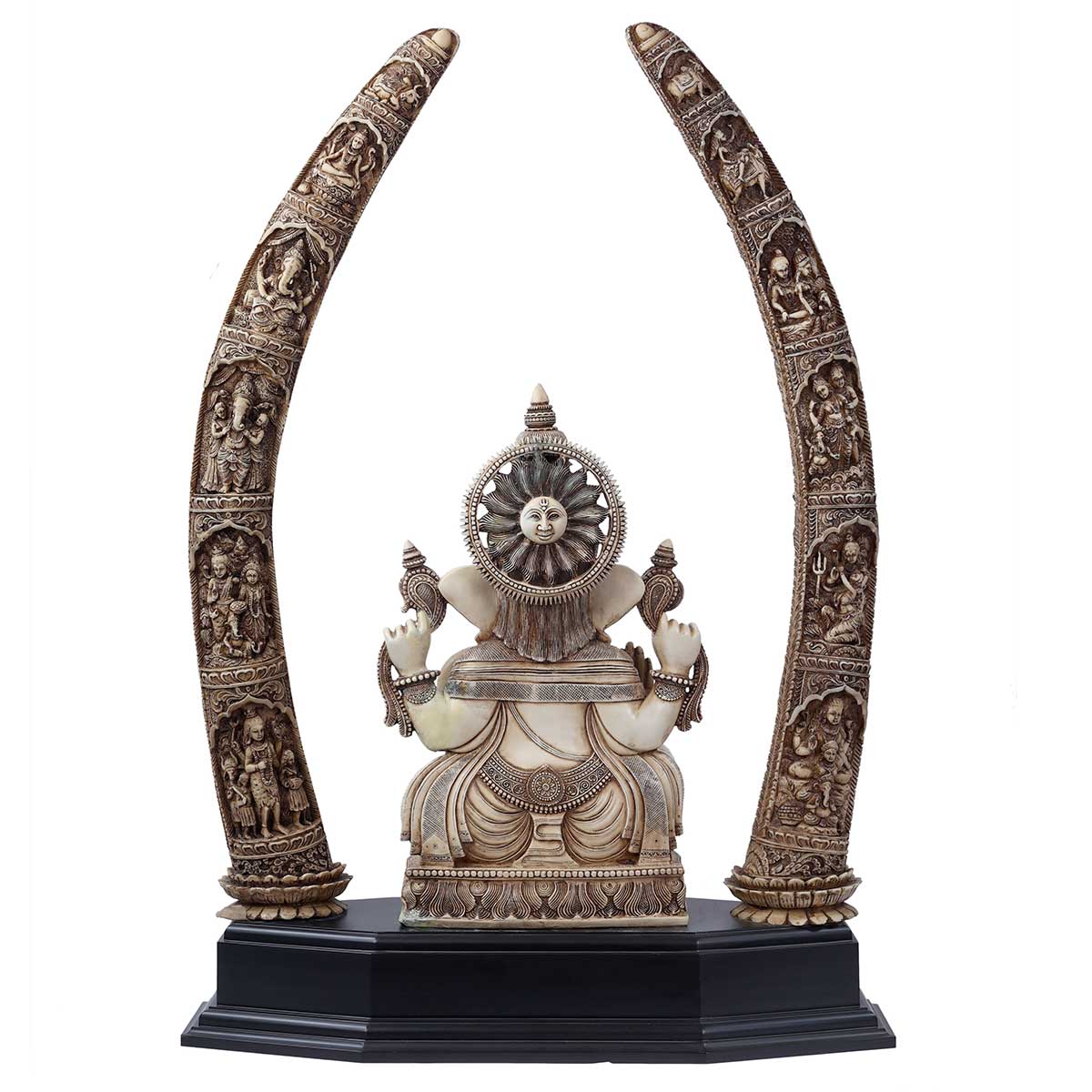 Lord Ganesha with Tusk Idol Ivory made of Soft stone - 28 x 12 x 39 Inch, 36 Kg