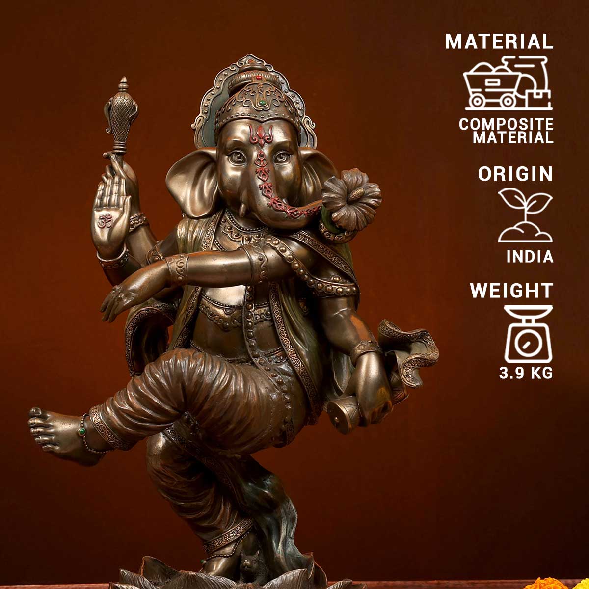 Lord Ganesha Nataraja pose idol made of Bonze Composite - 13 x 11 x 17.5 Inch, 3.9 Kg