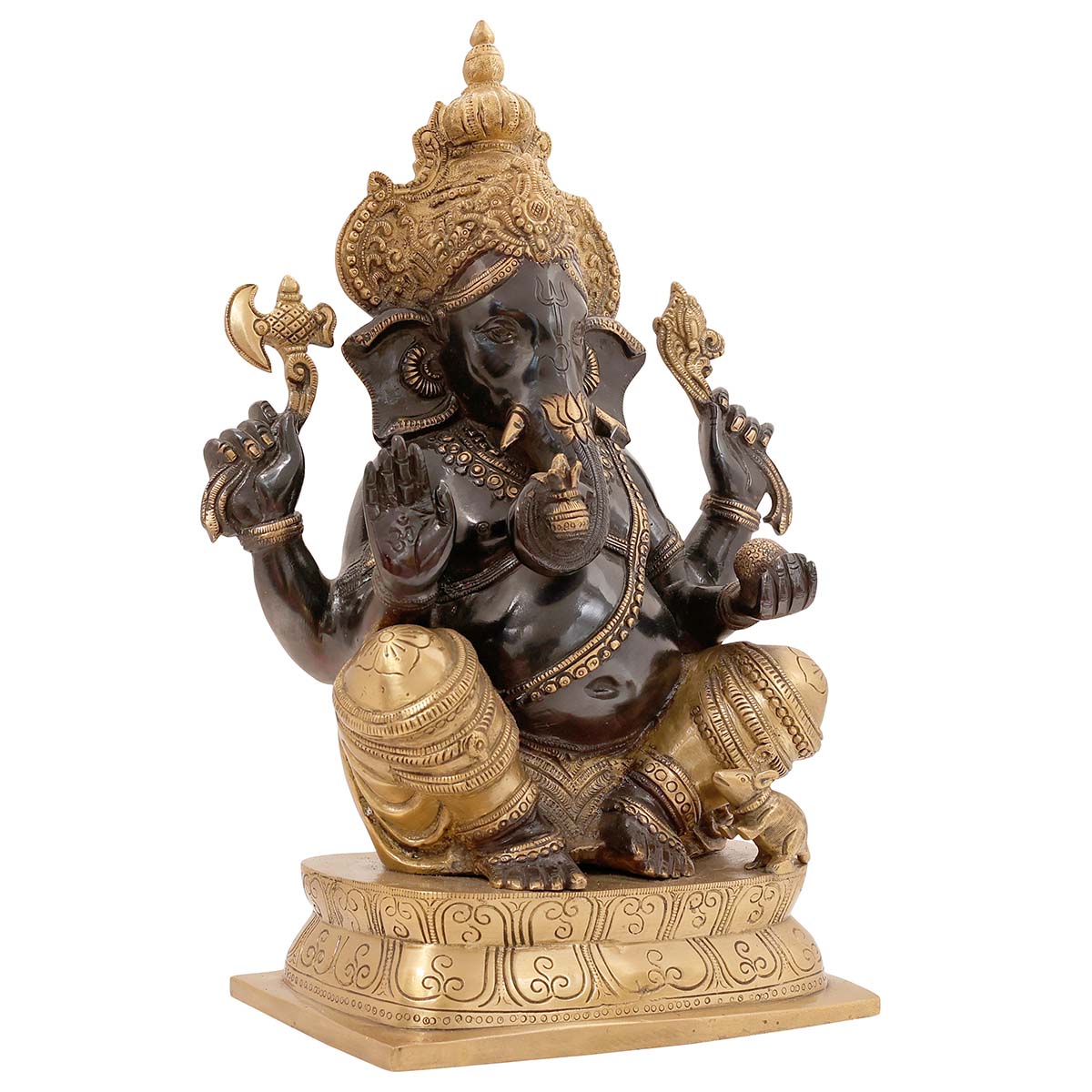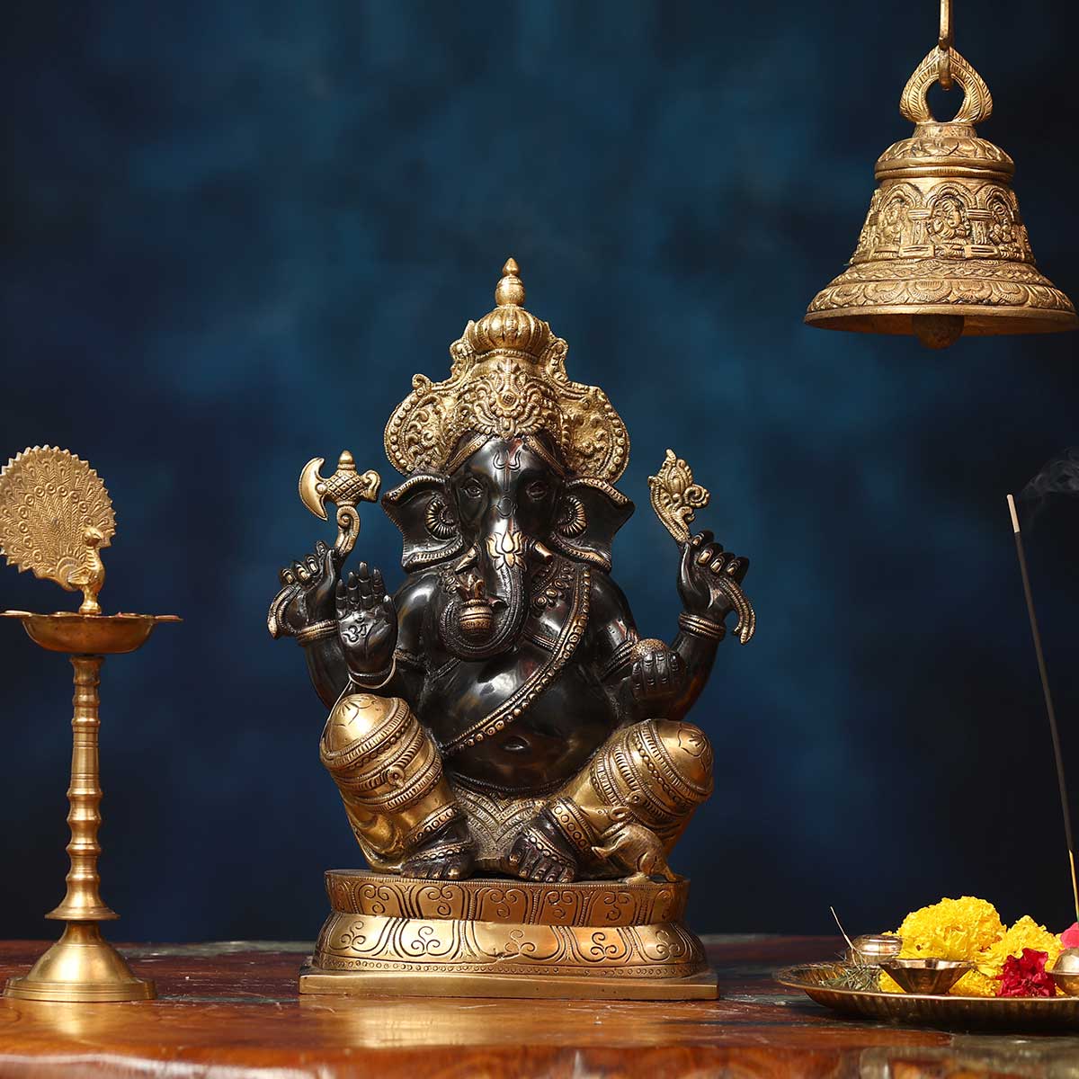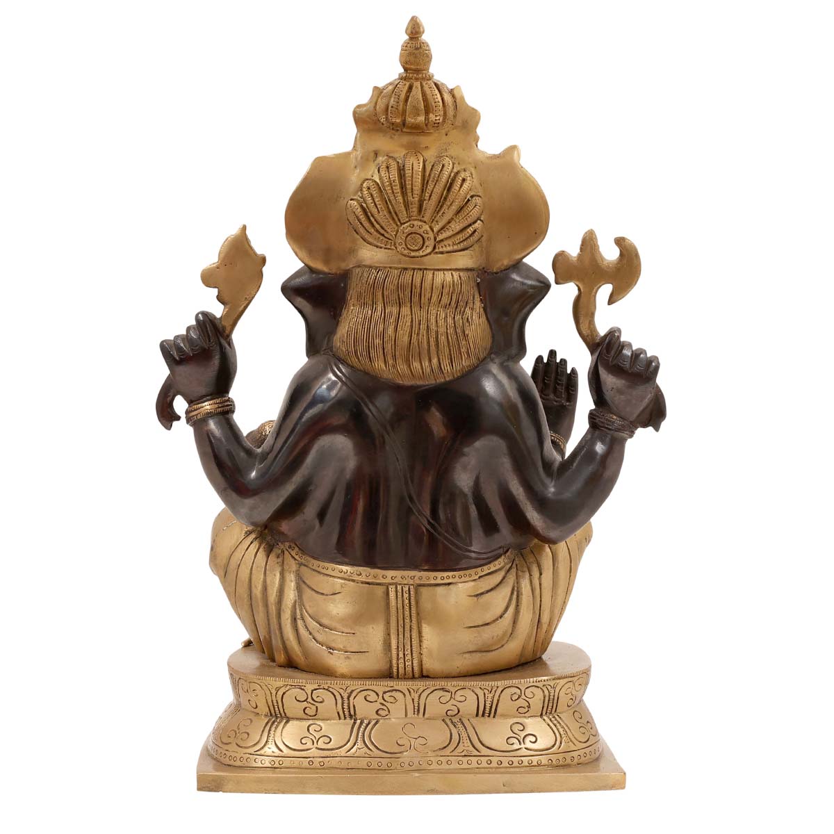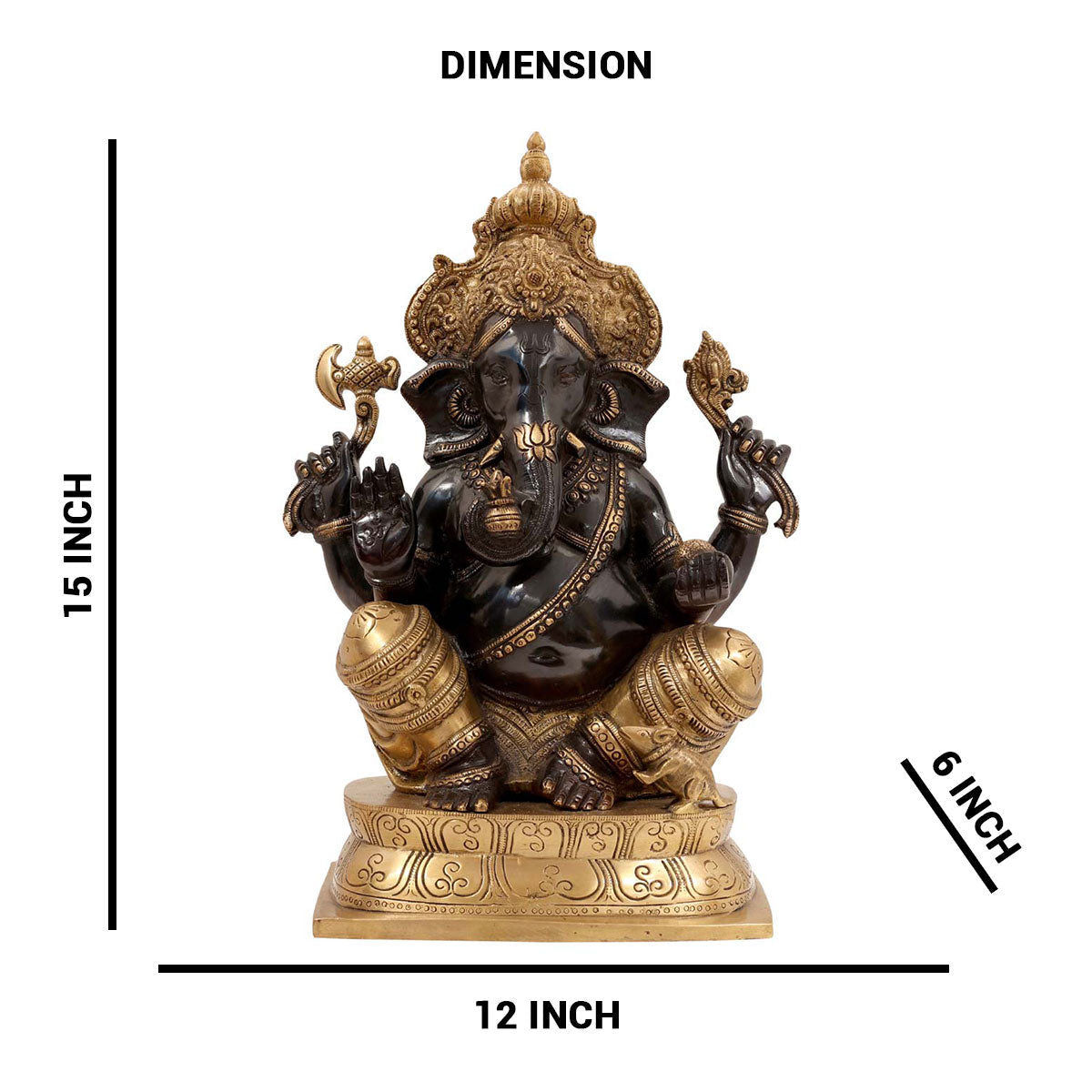 Lord Ganesha black sitting Idol made of Pure Brass - 12 x 6 x 15 Inch, 10.6 Kg