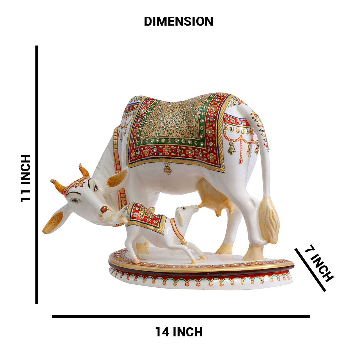 Lord Kamdhenu Standing with Calf Made of Soft marble - 14 x 7 x 11 Inch, 7 Kg