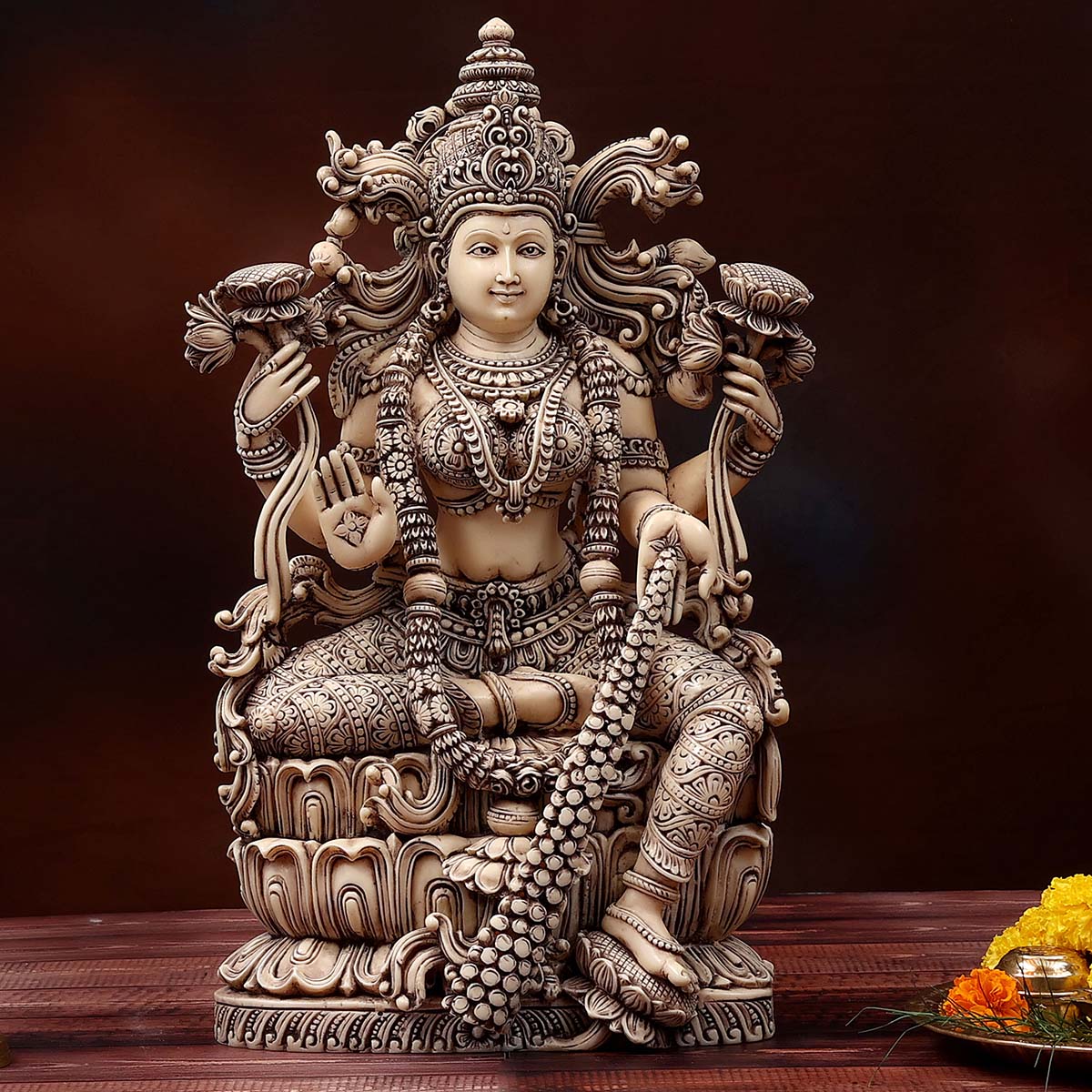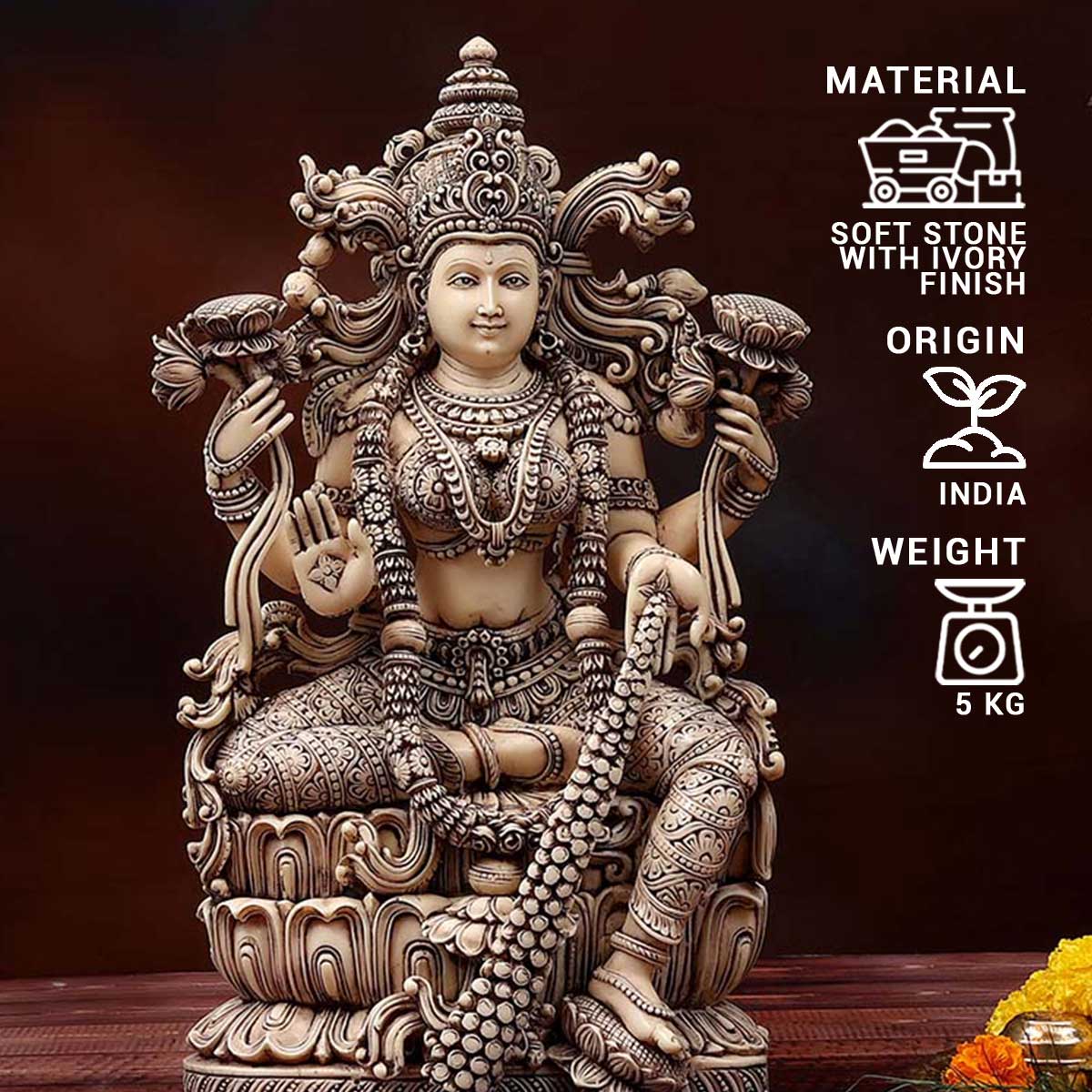 Lord Ivory Laxmi Sitting Made of Soft stone with Ivory finish - 9 x 5.5 x 15.5 Inch, 5 Kg