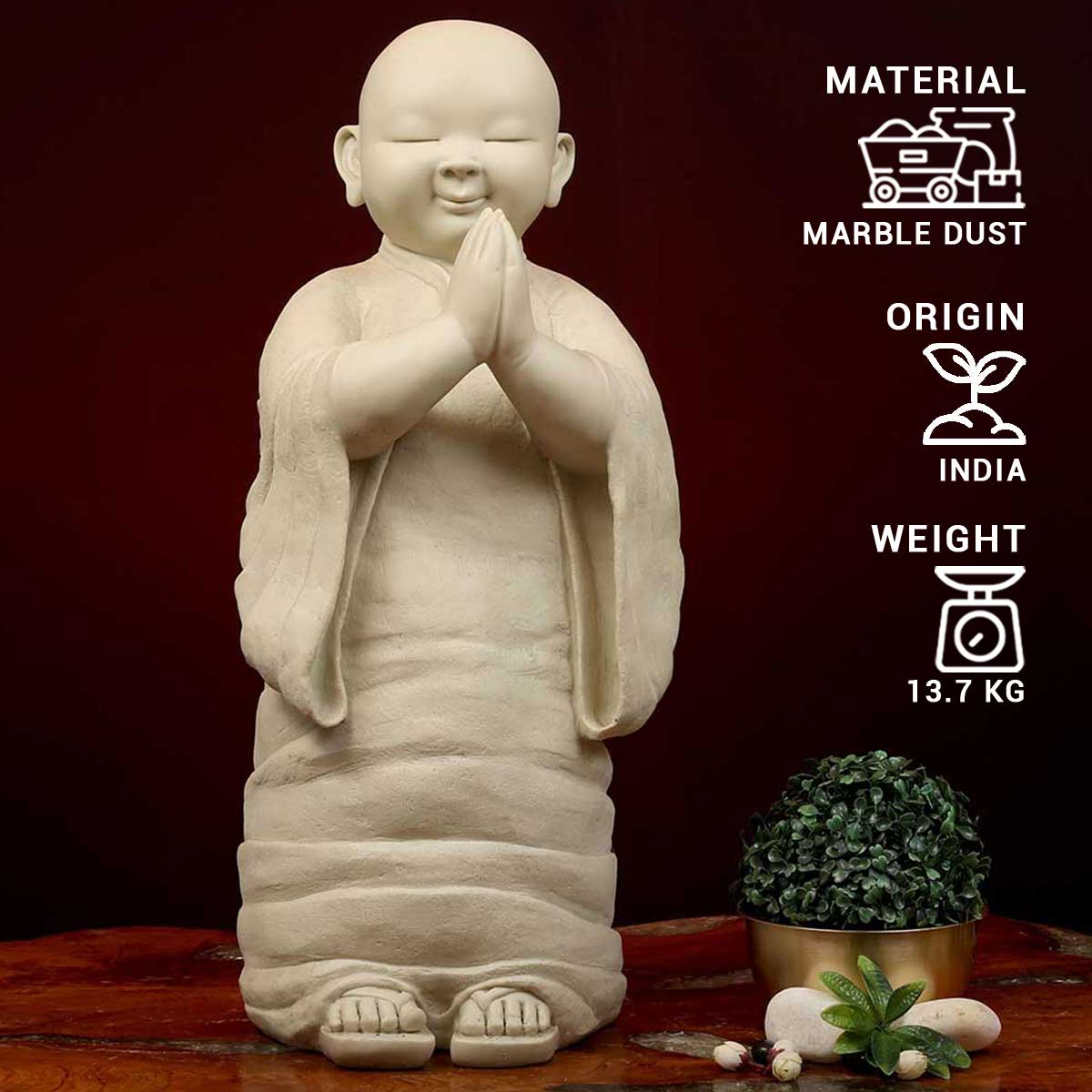 Lord Namaste Monk Made of Marble Dust - 10 x 10 x 27 Inch, 13.7 Kg