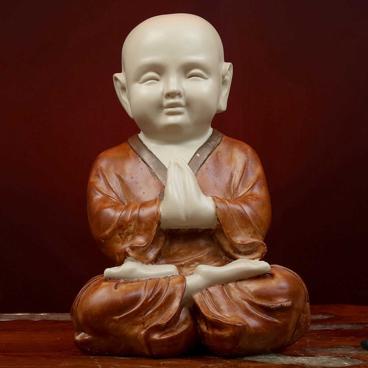 Lord Namaste Monk Sitting Made of Marble Dust - 2.5 x 3.8 x 11 Inch, 1 Kg