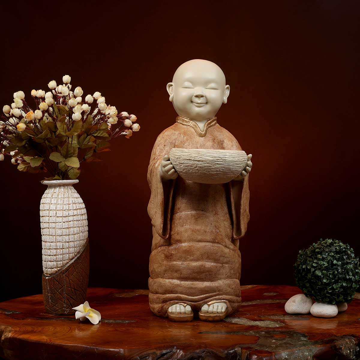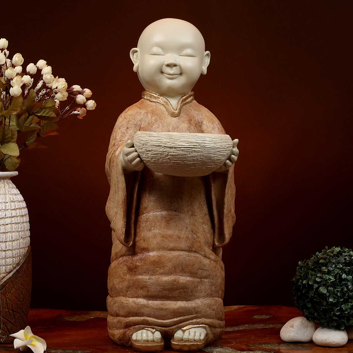 Lord Monk With Pot Made of Marble Dust - 10 x 8.5 x 26 Inch, 14.1 Kg