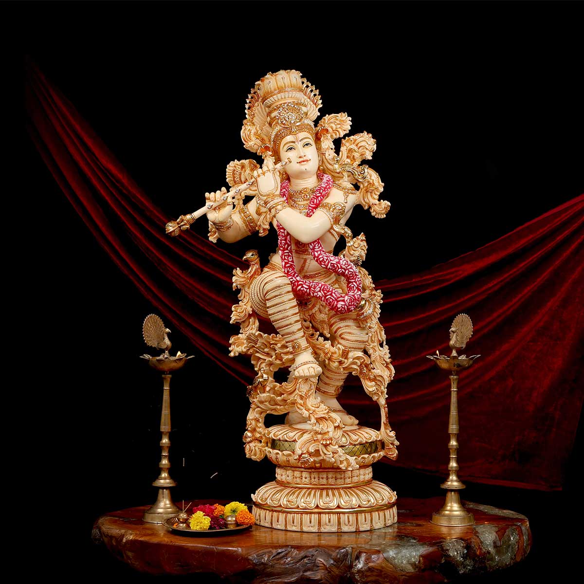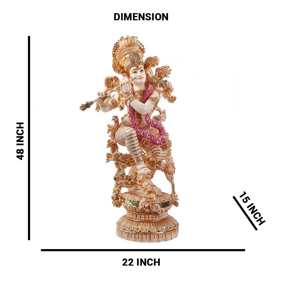 Lord Krishna Playing Bansuri Standing Idol made of Soft Marble - 22 x 15x 48 Inch , 51.5 Kg