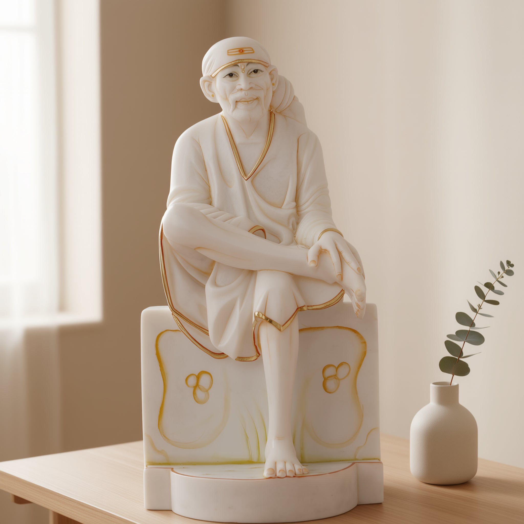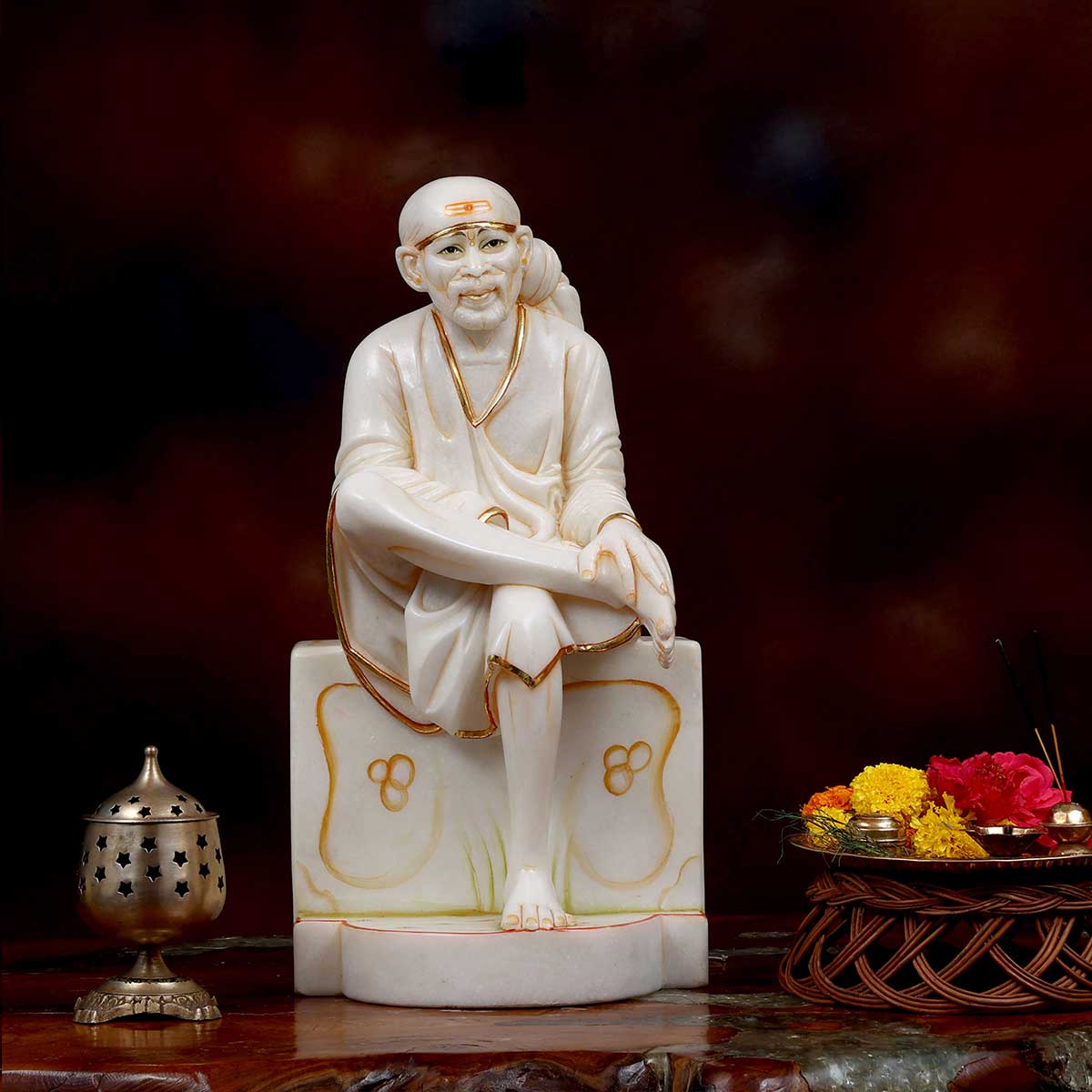 Lord Sai Baba Sitting Asana made of Marble - 11 x 8.5 x 20 inch, 27 kg