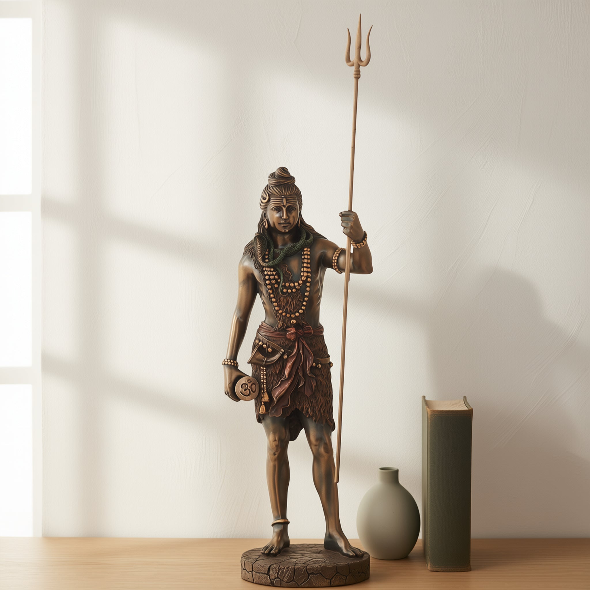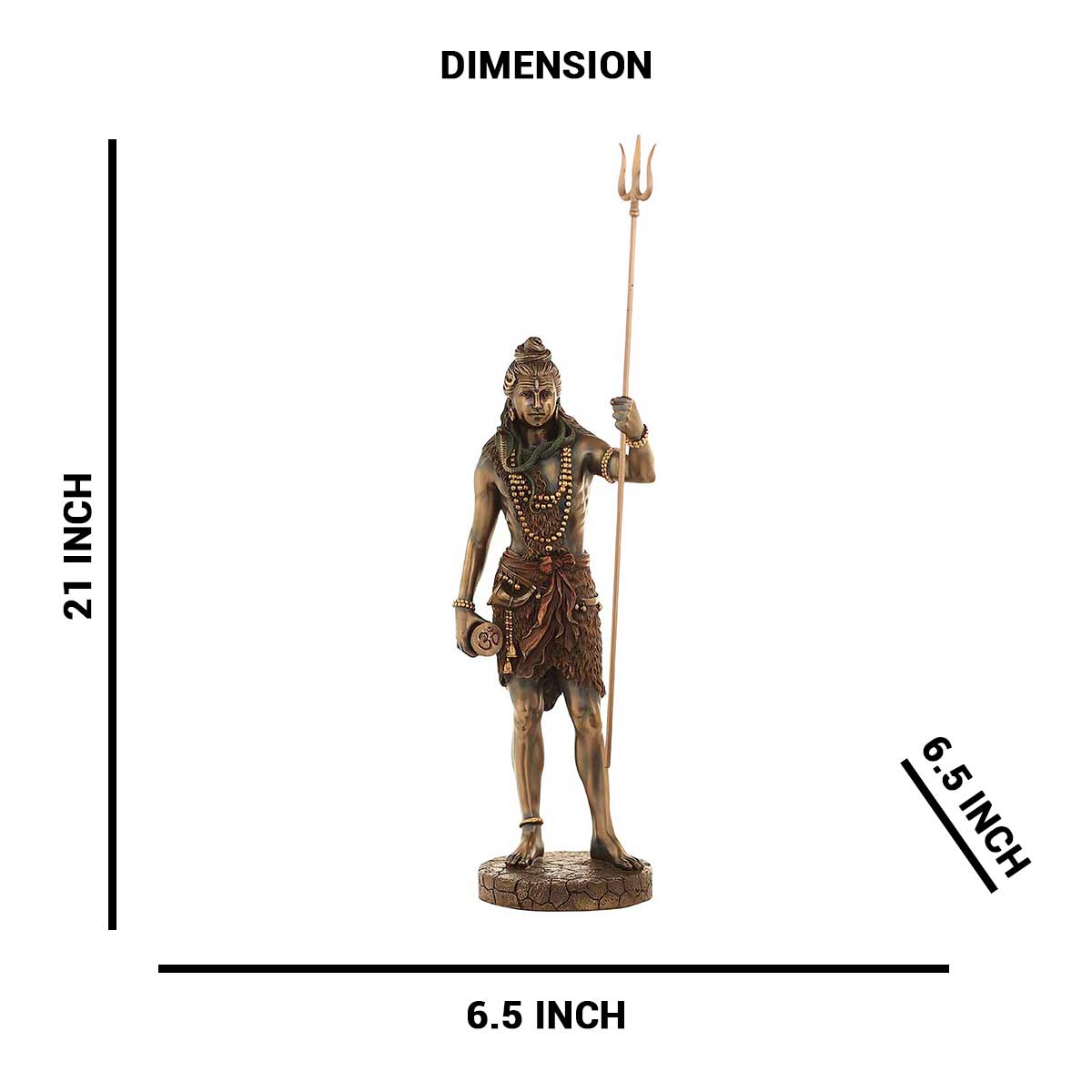 Lord Shiva Standing Statue with Trishul - 6.5 x 6.5 x 21 Inch, 2 Kg
