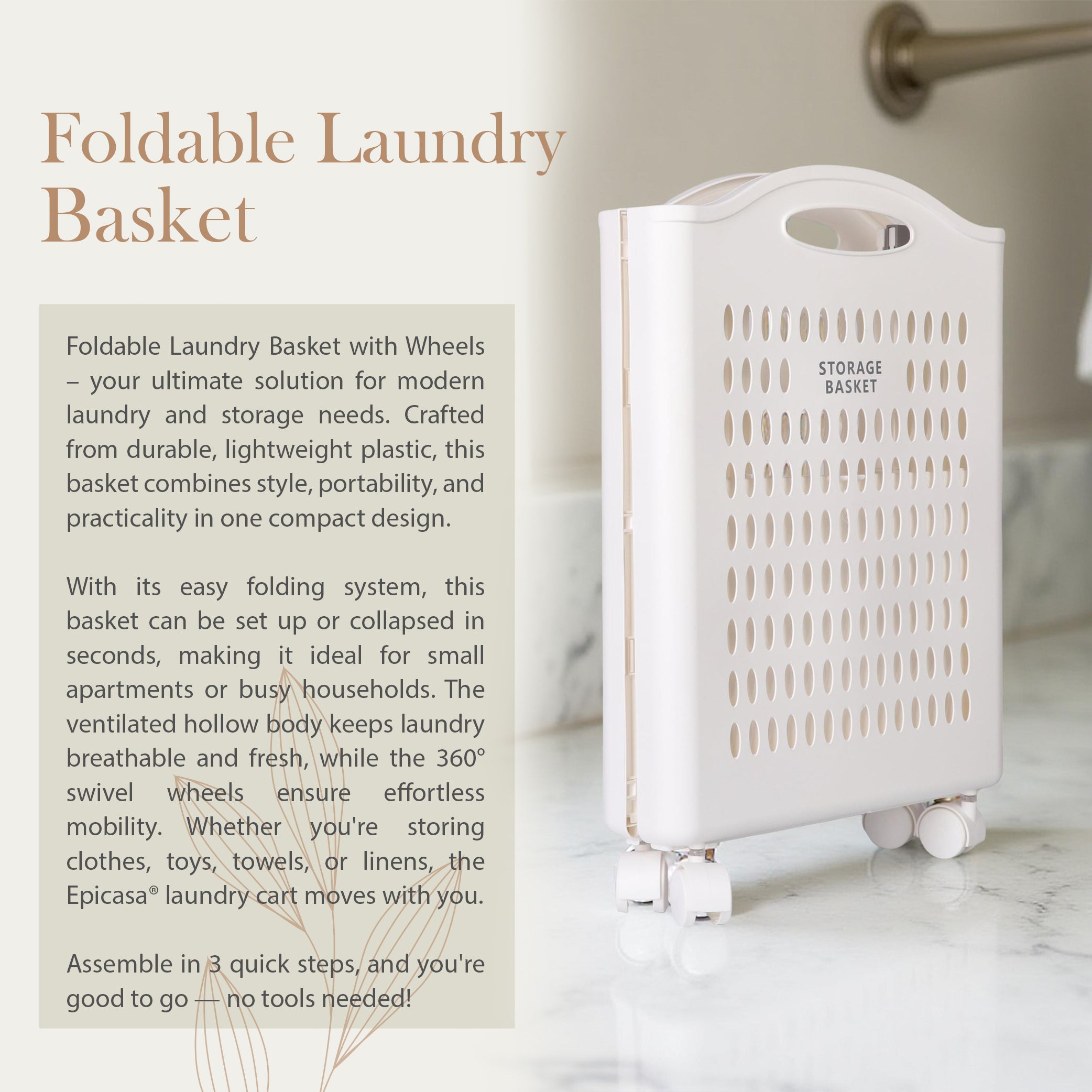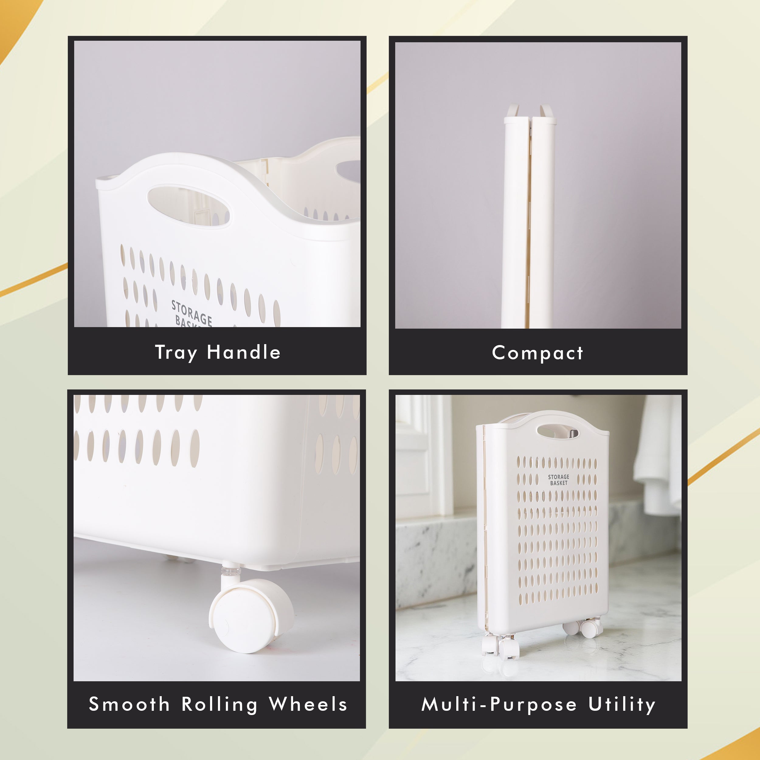 Foldable Plastic Laundry Basket With Wheels - White