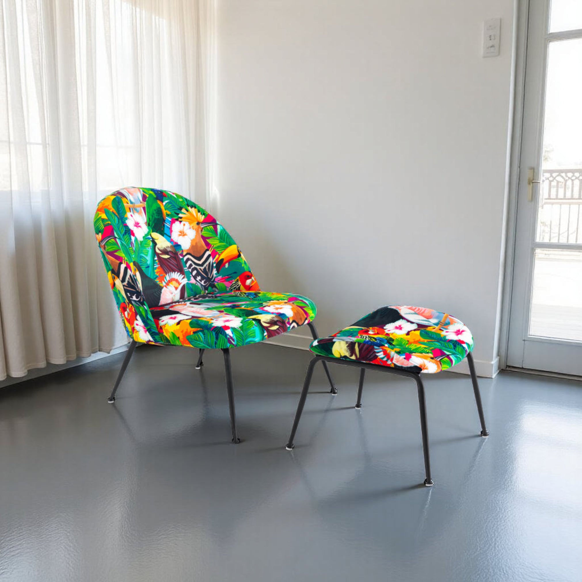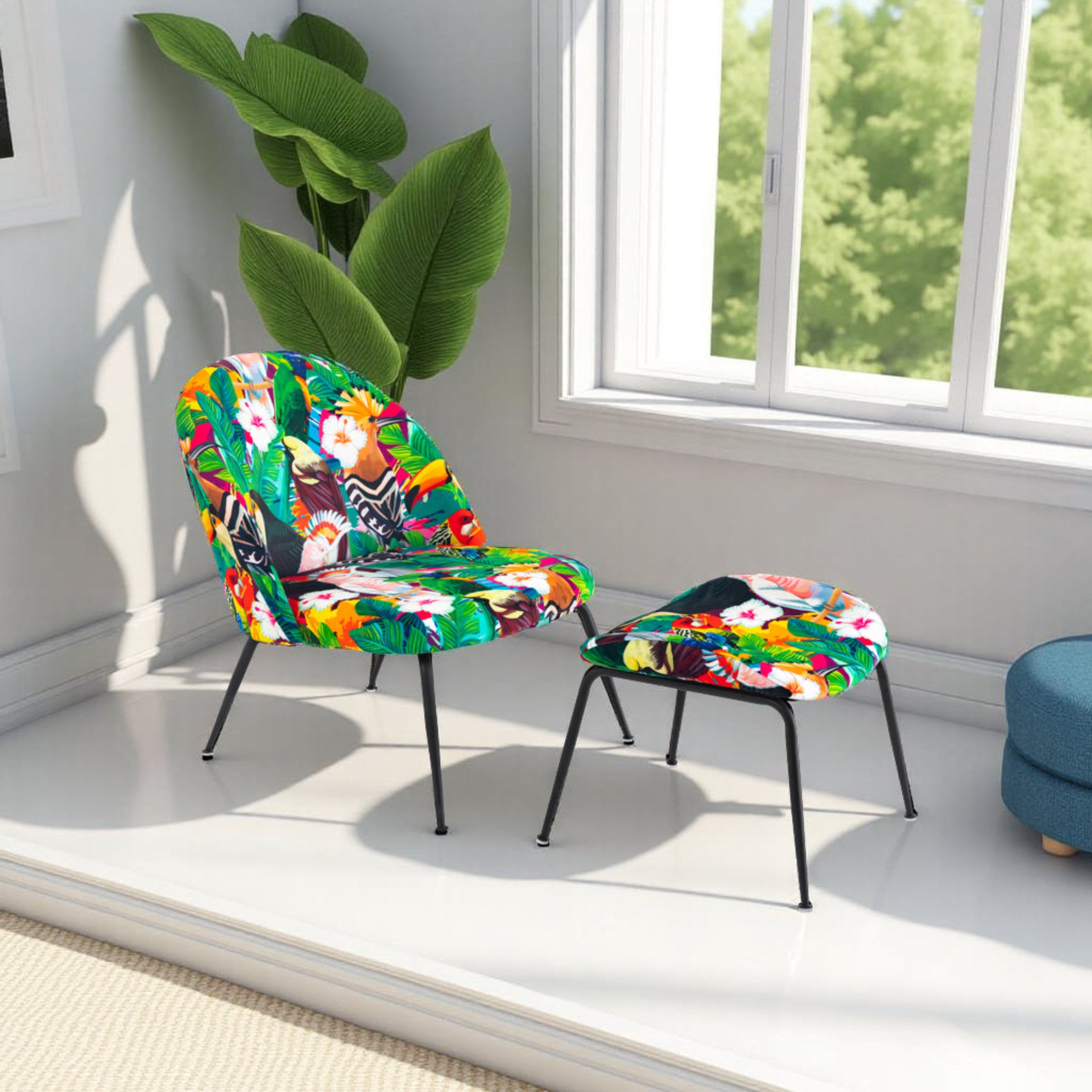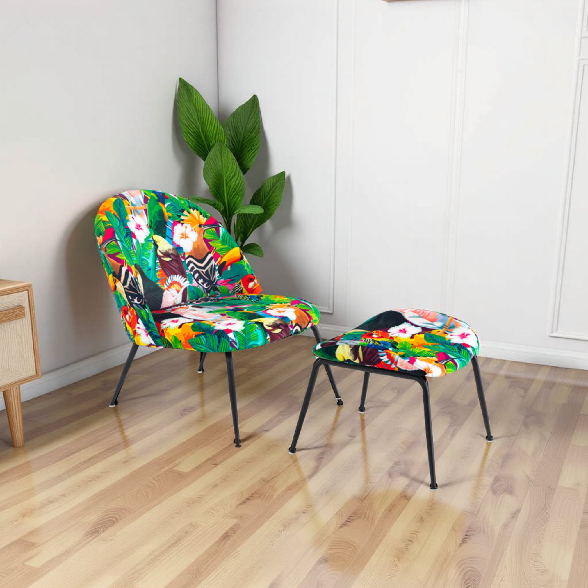From its gently curved seat to sleek, beautifully printed upholstery and a metal frame, every detail makes this an unmistakable piece of fashionable design - this beautiful accent chair is perfect for your living room, den, lounge, bedroom or office - use footrest to define a conversation area