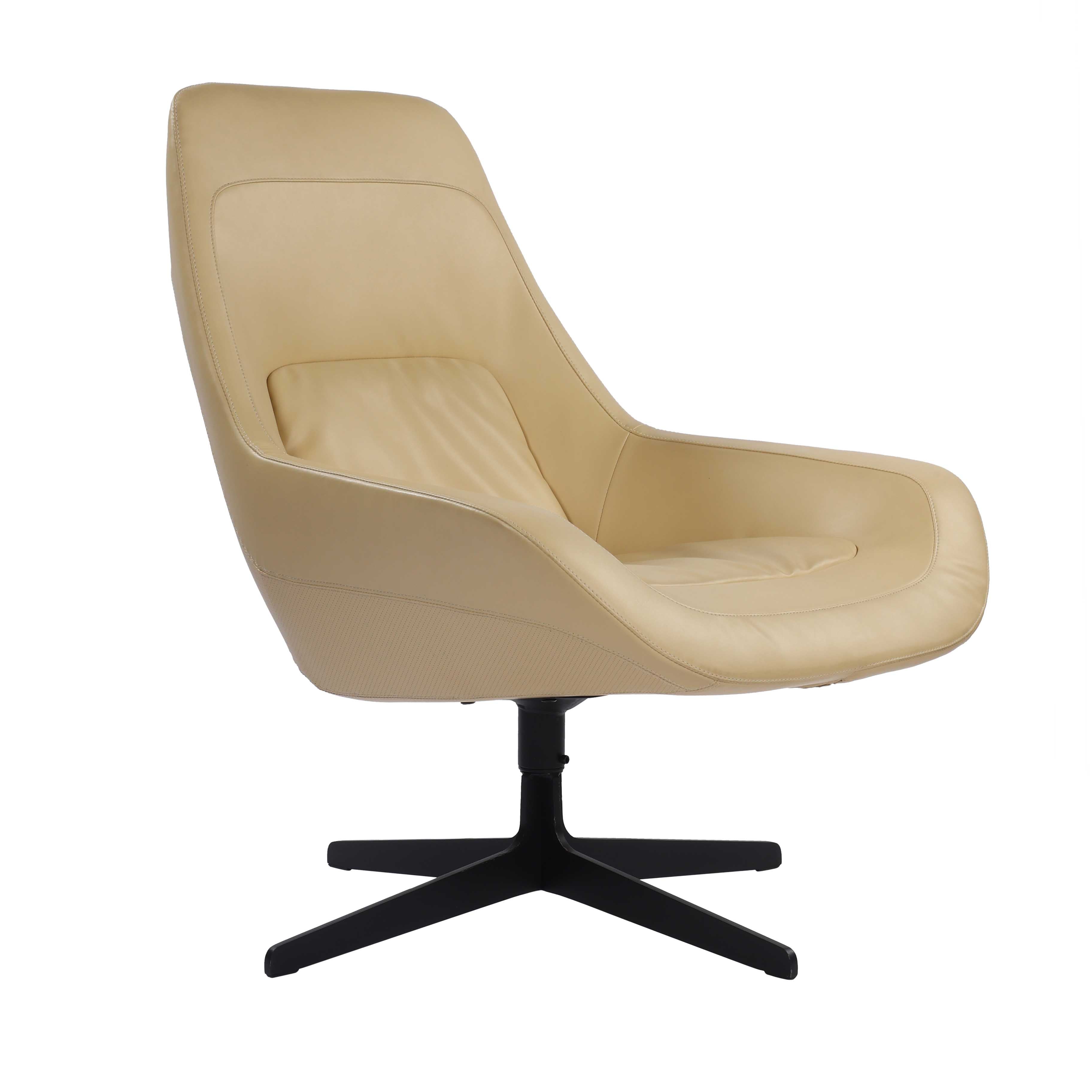 Olivia Leather Lounge Armchair Chair with Ottoman Footrest - Beige