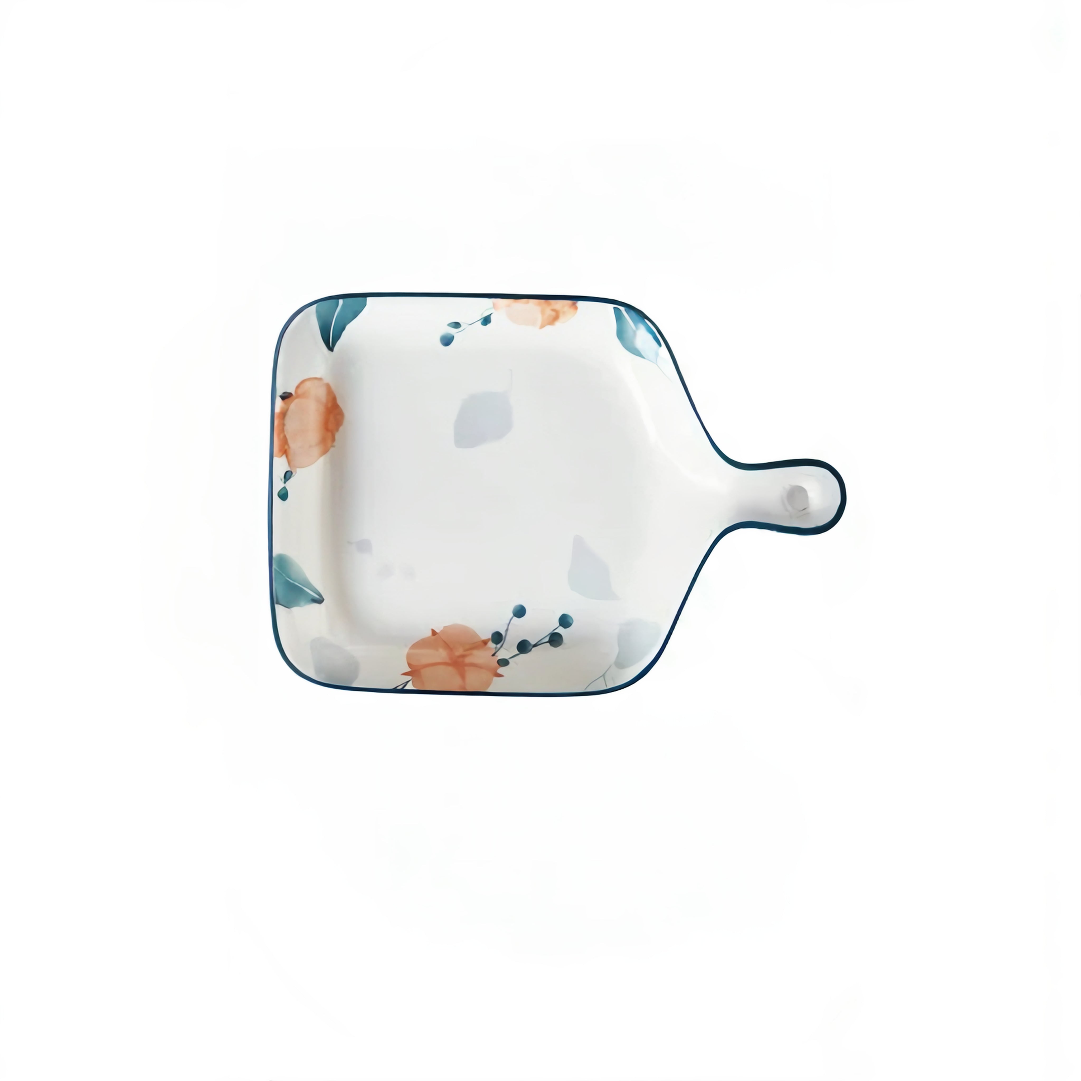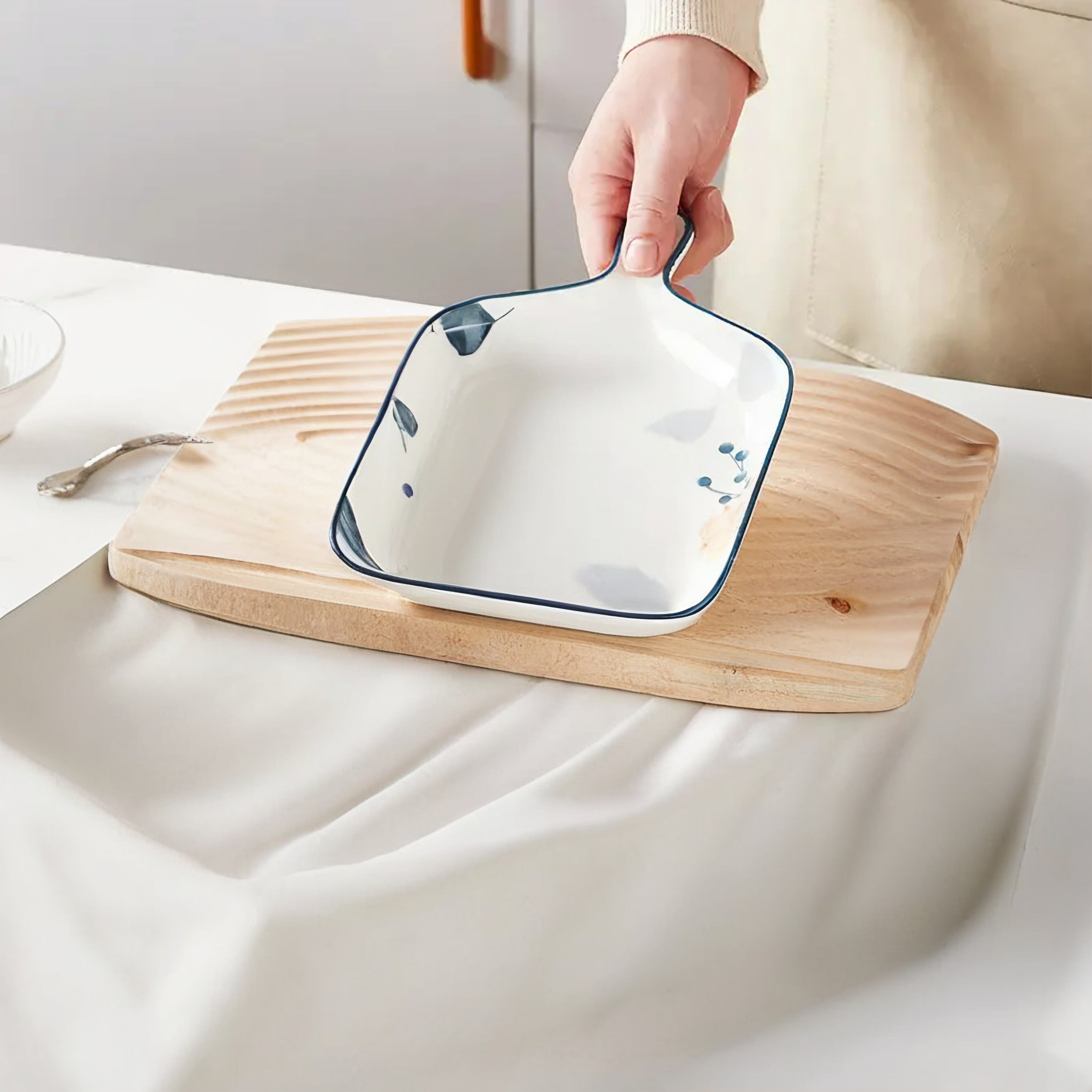 Meadow White Ceramic Serving Platter with Handle Microwave & Dishwasher Safe