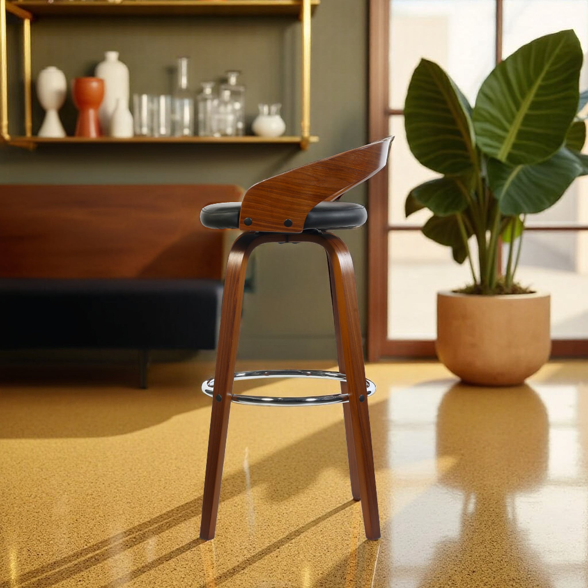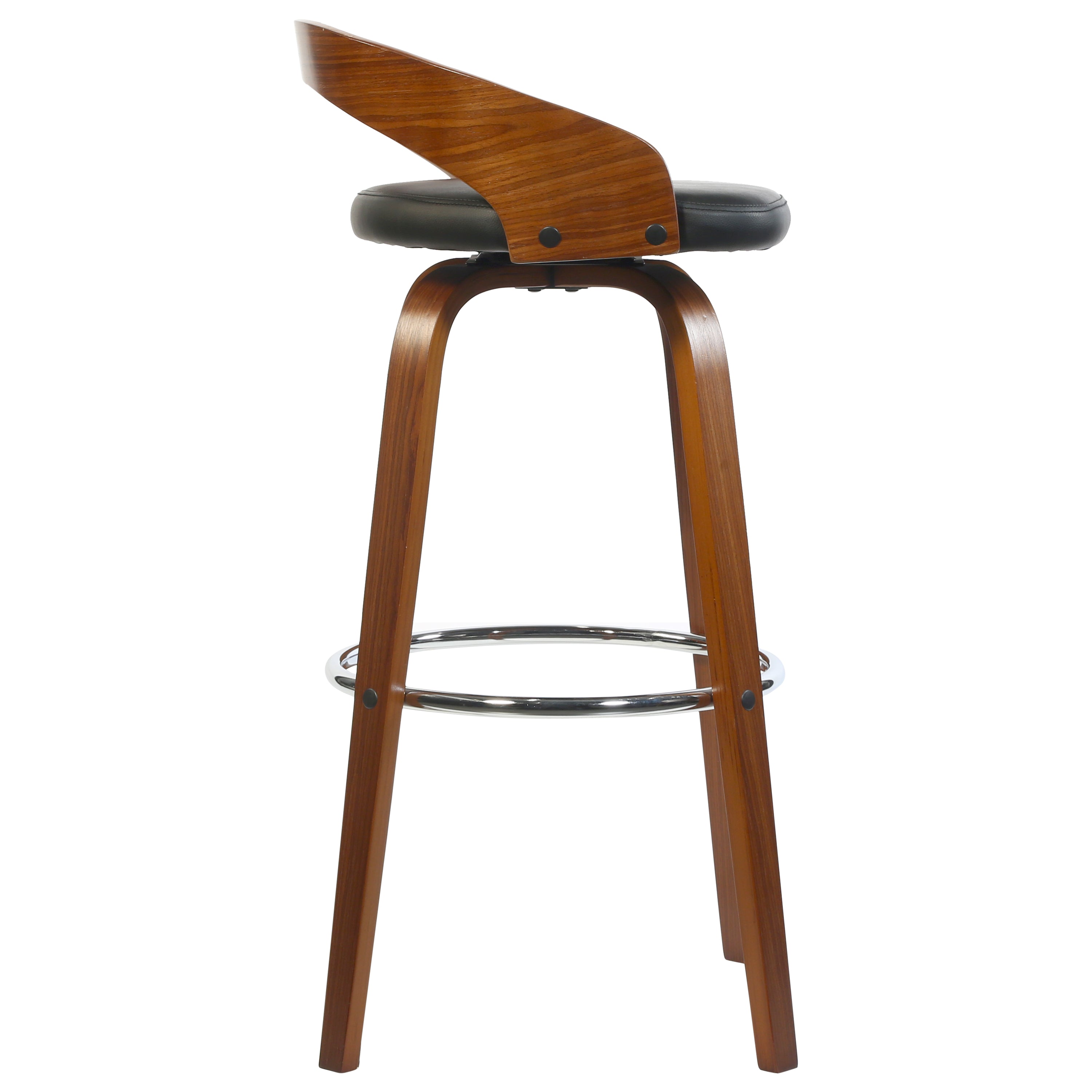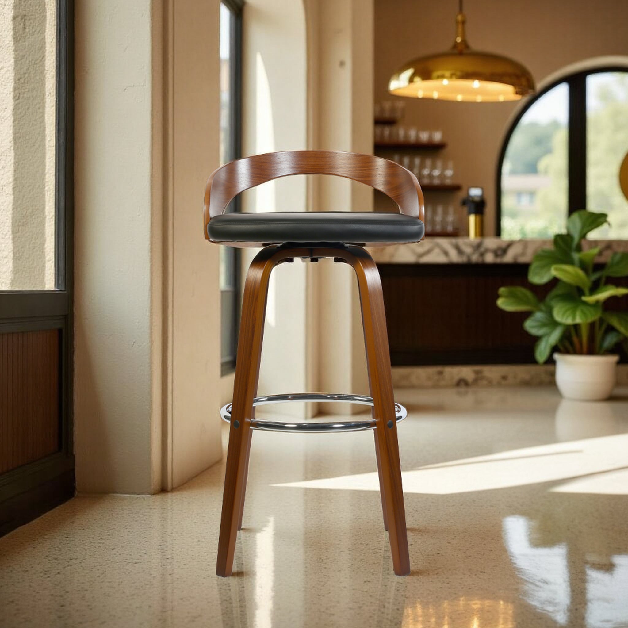 - Bar stool chair with classy curvy backrest, steel swivel foot rest for feet support.