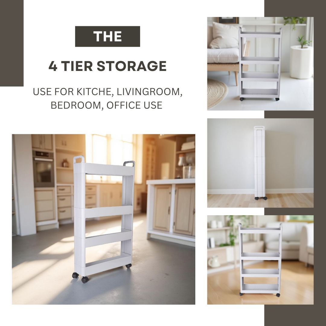 4-Tier Storage with Ample Space: Designed with four spacious shelves, this rack provides generous storage for a wide variety of items. Perfect for organizing kitchen essentials like spice jars, oil bottles, and snacks; bathroom toiletries such as shampoo, towels, and cleaning supplies; or office items including files, stationery, and craft materials. Ideal for keeping your space tidy and clutter-free in any room.