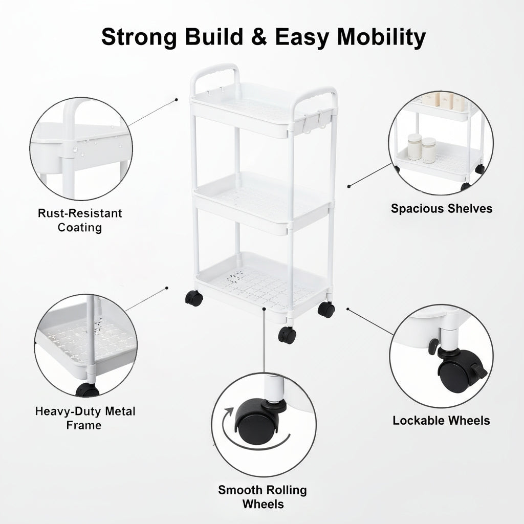 3 Tier Rolling Metal Storage Rack Organizer