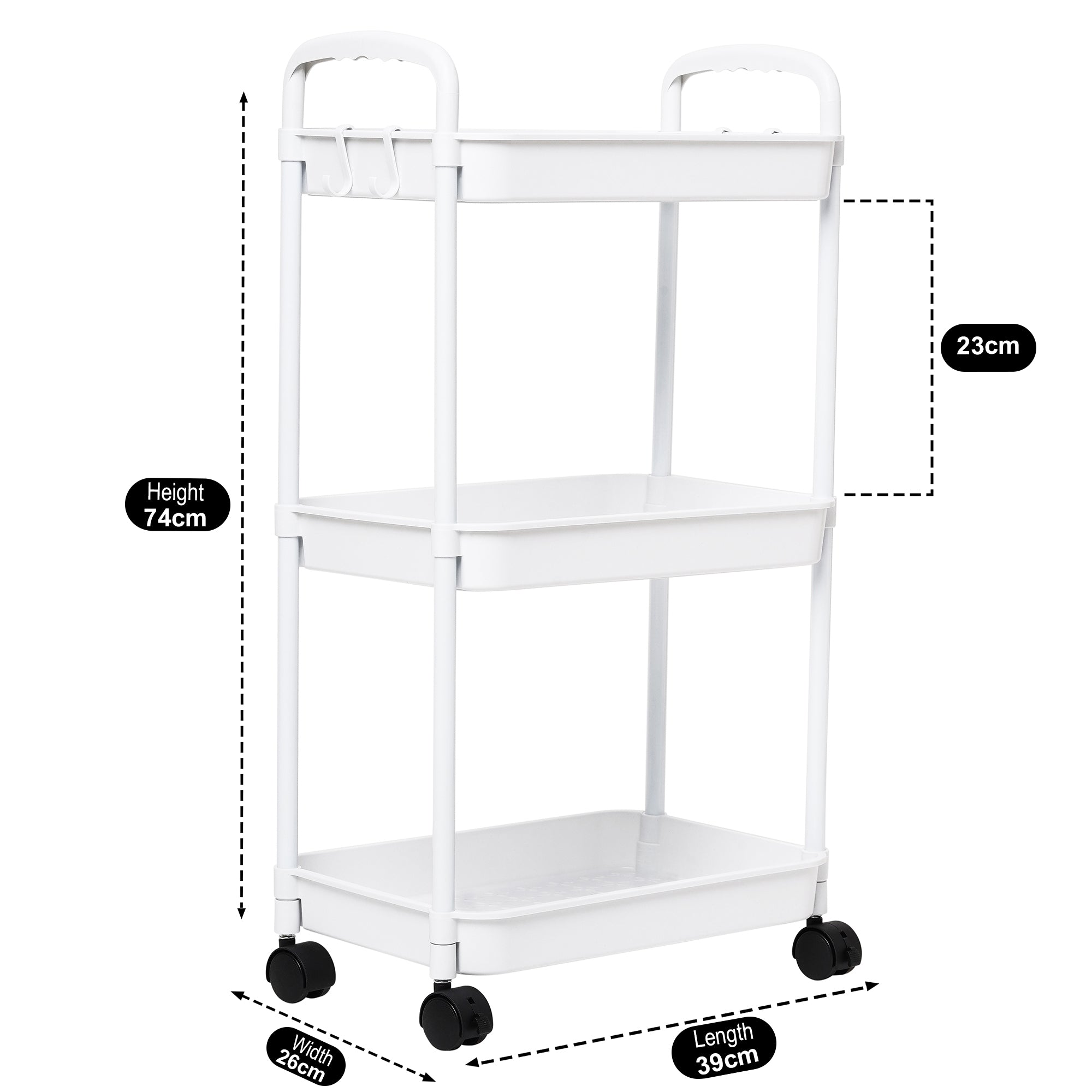 Equipped with four high-quality swivel caster wheels (two lockable), the trolley glides smoothly across any floor surface, making it easy to move and reposition, even in tight spaces.