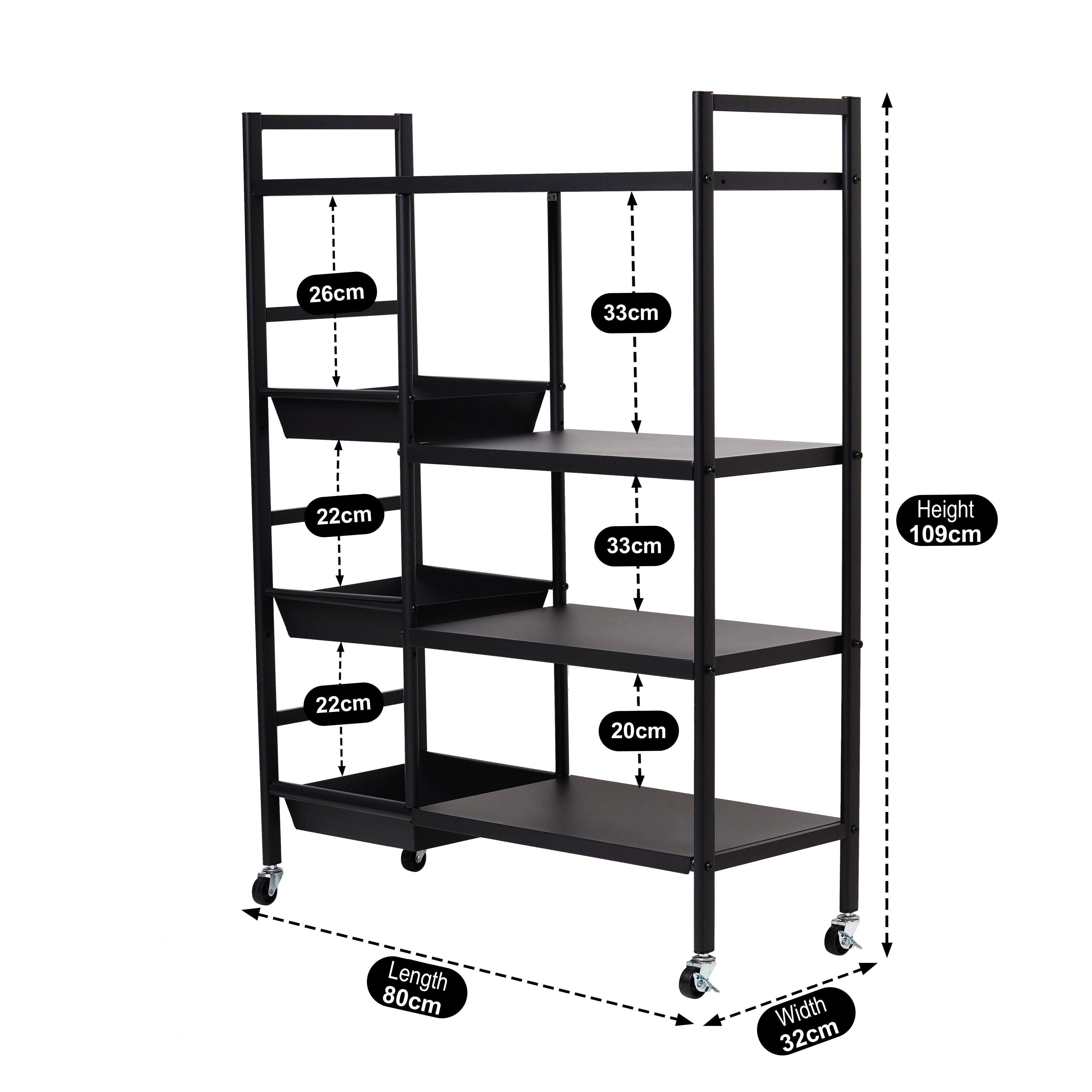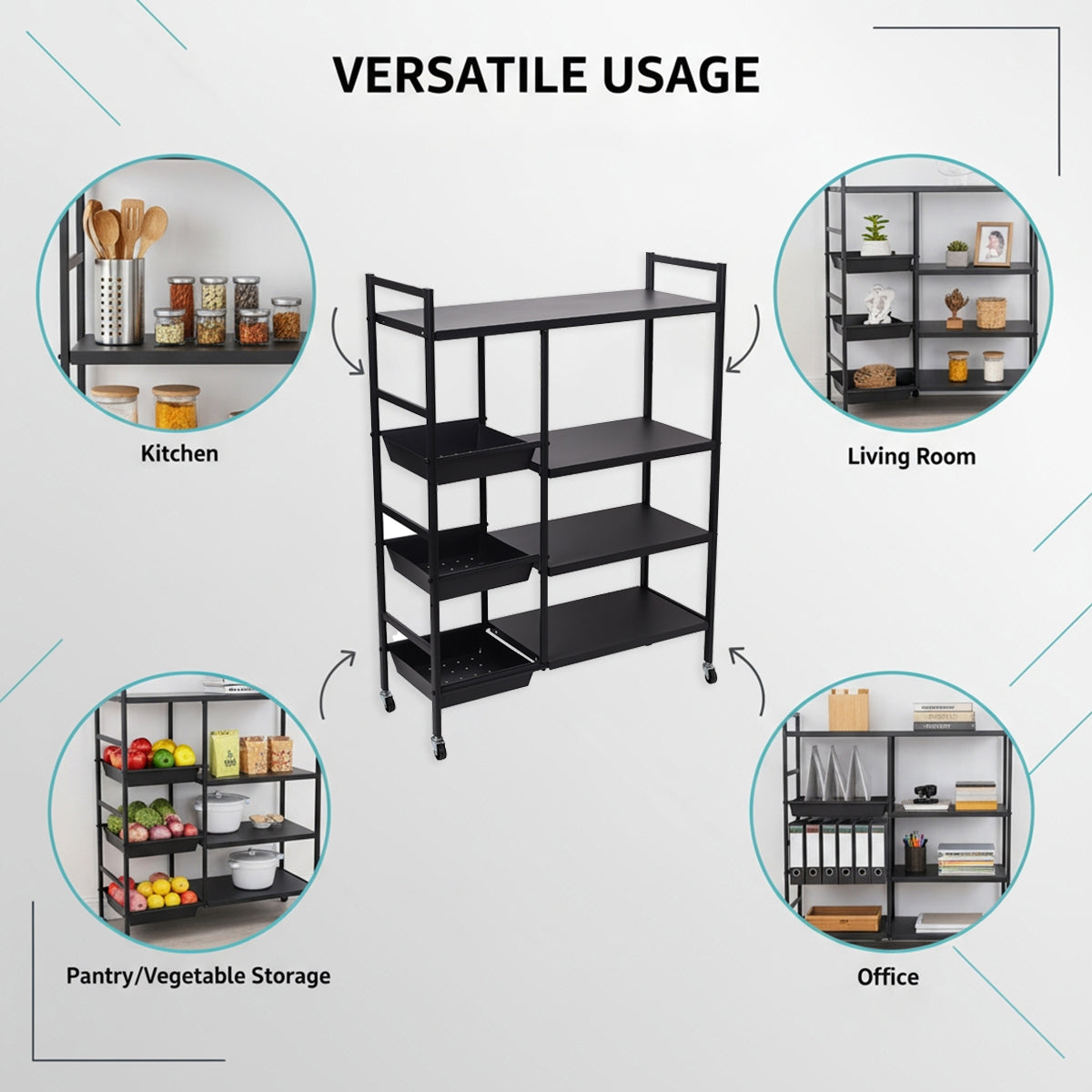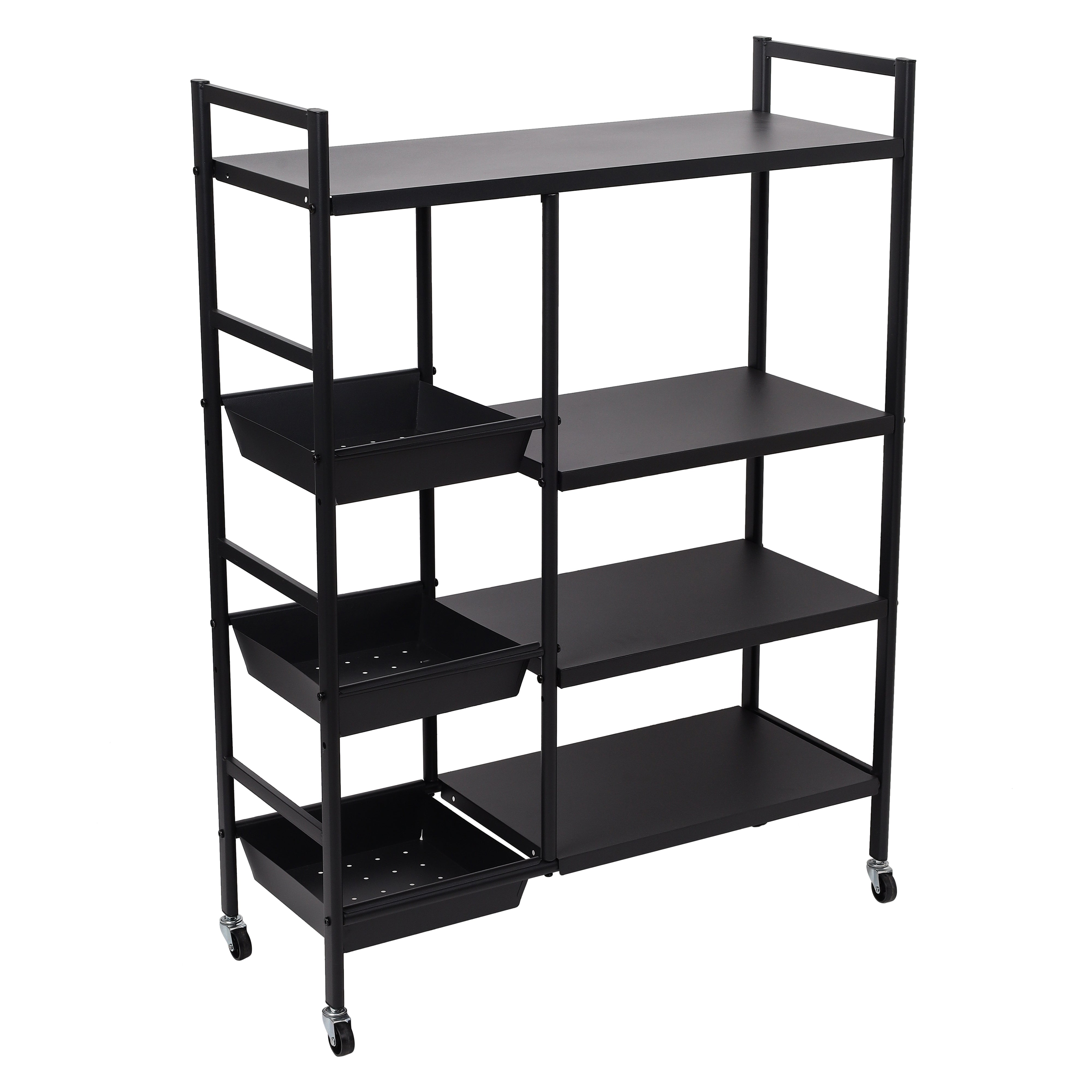 Versatile Multi-Shelf Design: Combines 3 deep storage baskets and 4 flat open shelves to offer flexible organization—perfect for storing everything from canned goods and cookers to fresh produce, books, or utility items in your kitchen, home, or office.