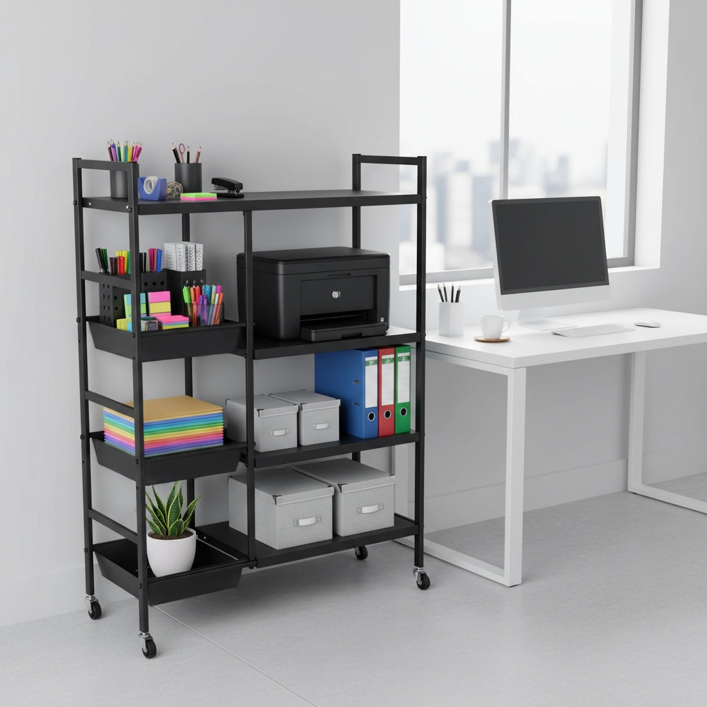 Durable Metal Frame for Long-Term Use: Crafted from high-strength, rust-resistant metal, this 4-tier storage rack is designed to hold heavy loads such as kitchen appliances, pantry essentials, vegetables, and home supplies without any bending or warping over time.