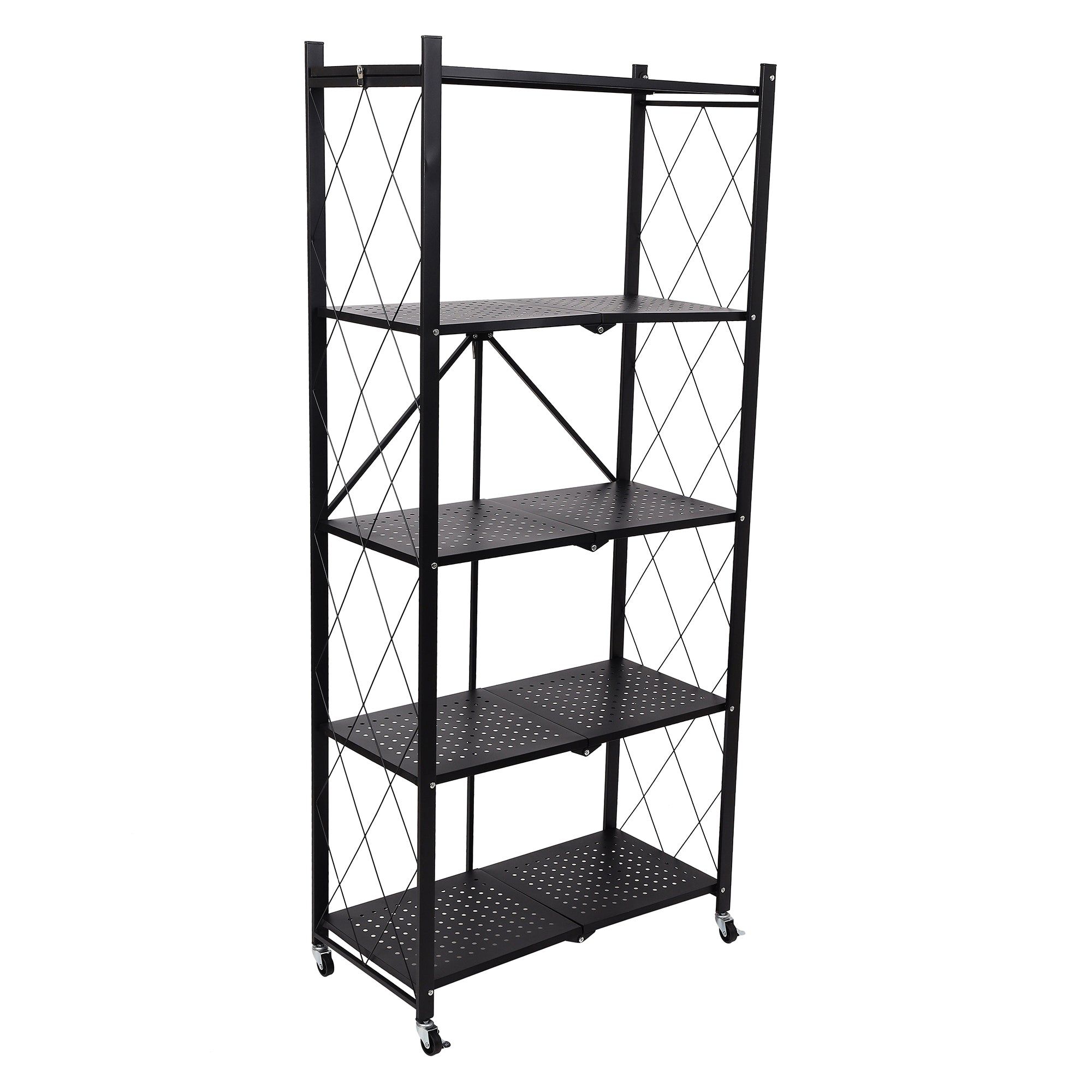 5-Tier Folding Metal Shelf Trolley - Black
