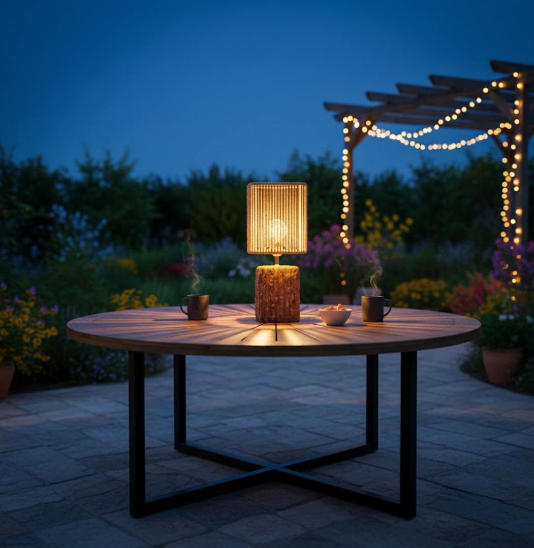 | Materials & Texture: Features a solid, wood-inspired rustic base paired with a handwoven square shade made from natural jute fibers. Lighting Effect: Designed to provide soft ambient illumination, filtering light through the weave to create warm, textural shadows. Contents included with the product: Bulb, and fitting, ready for setup. |