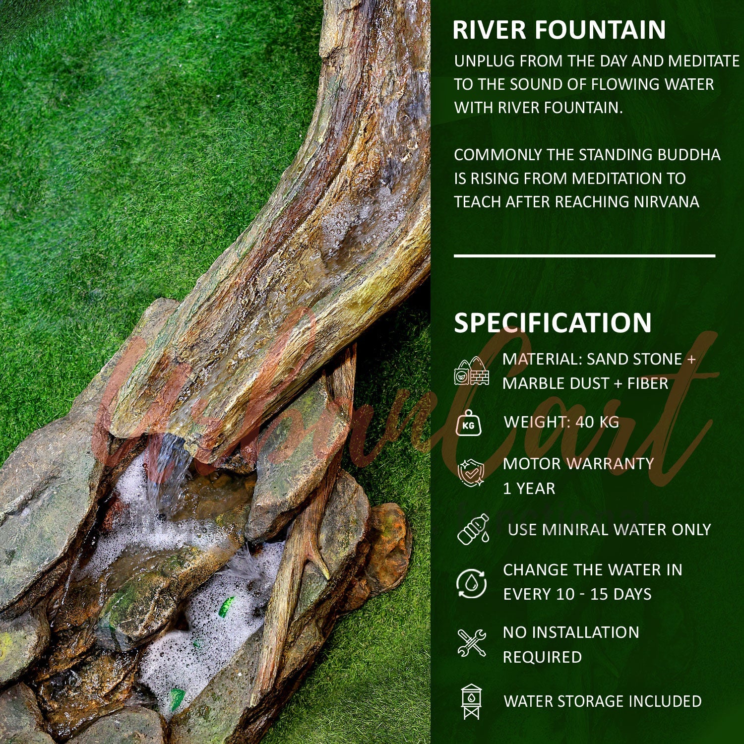 Unplug from the day and meditate to the sound of flowing water with river fountain.